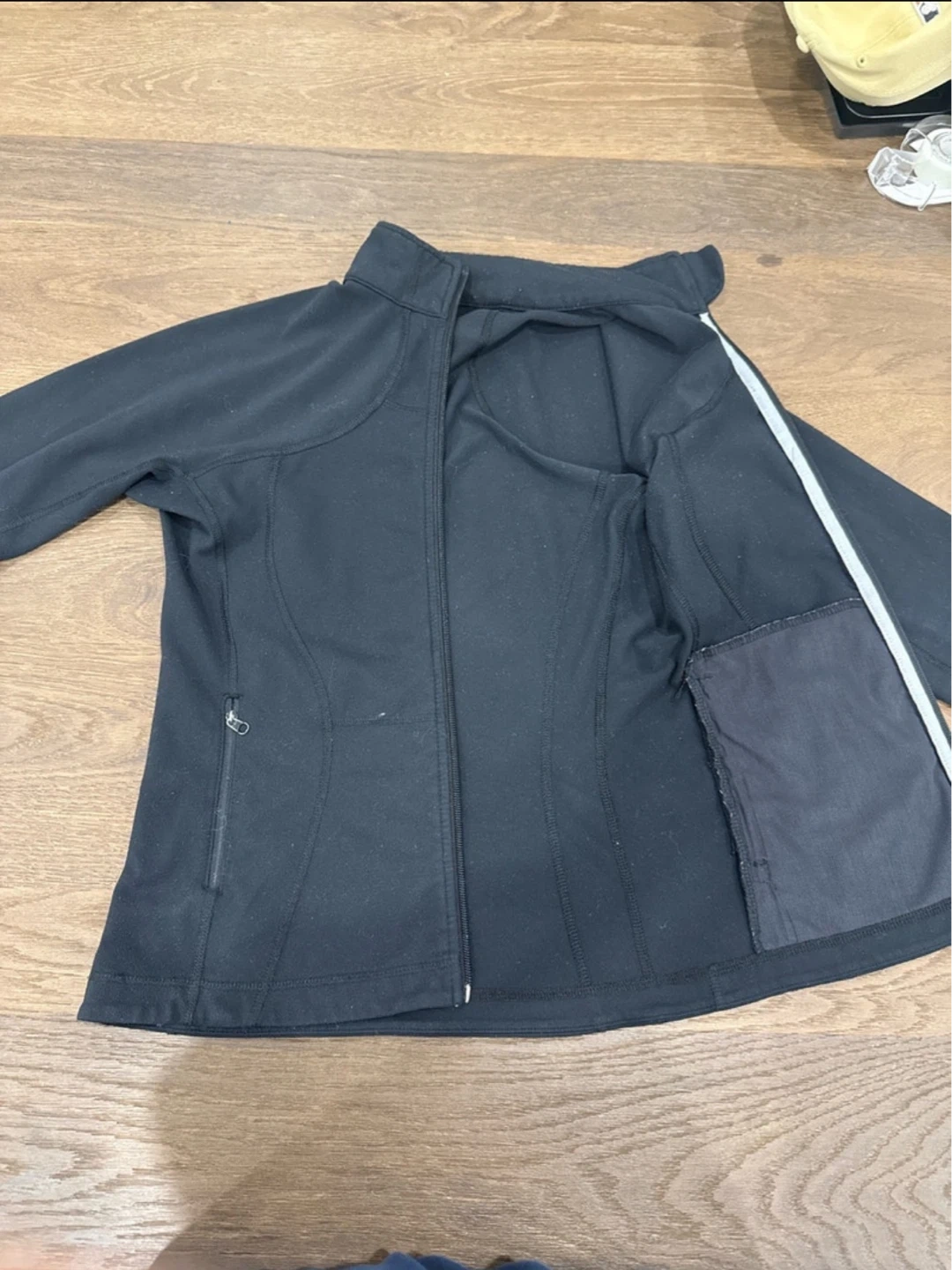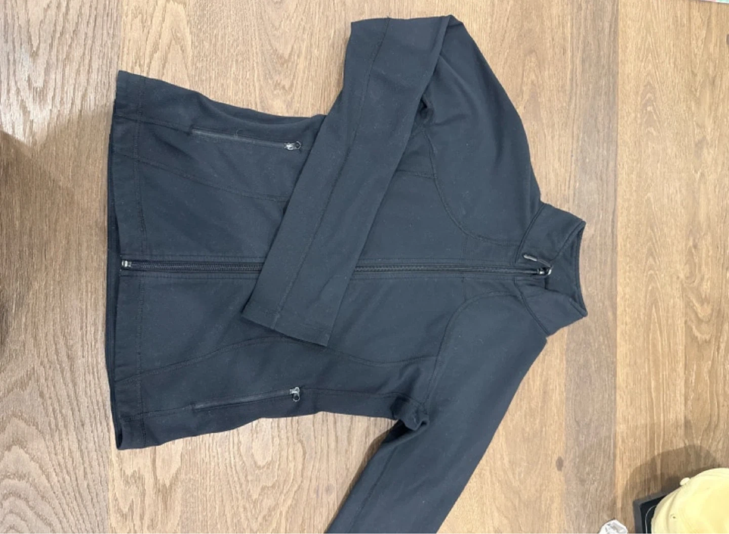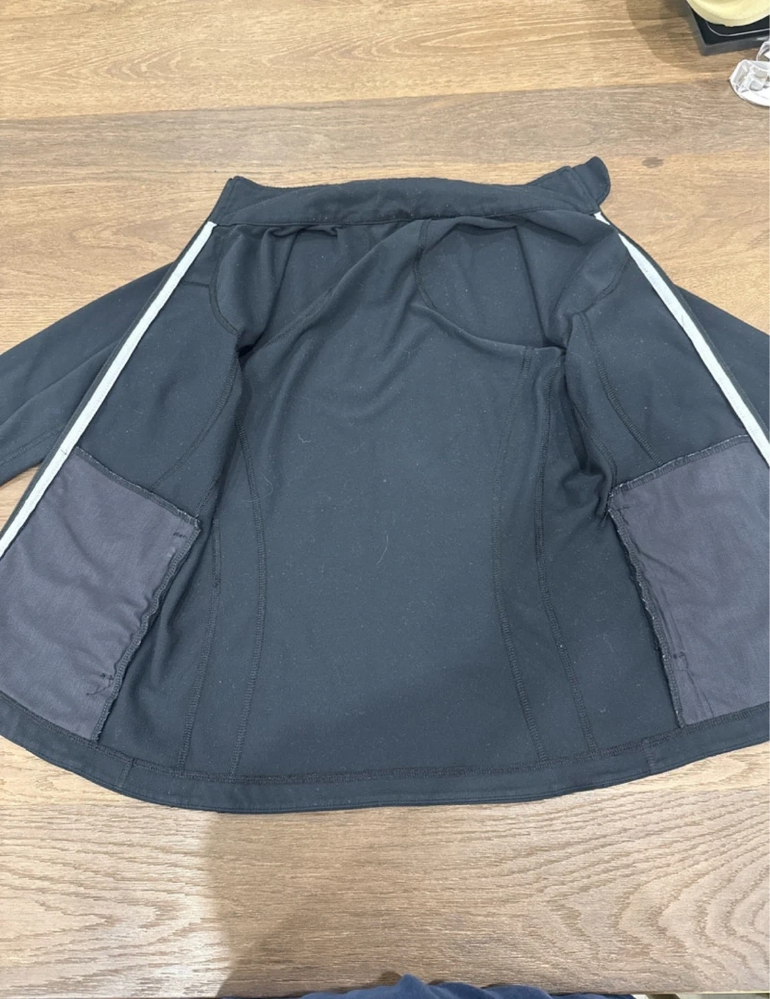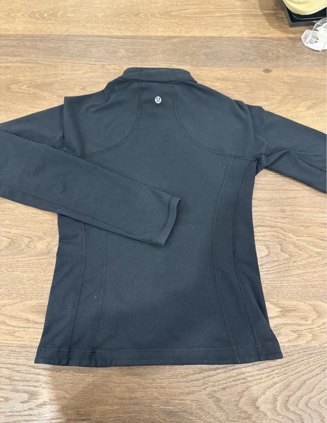 Selling a Lululemon black jacket! It's in great condition and perfect for layering or wearing on its own. It features a full zip front and is made from comfortable, stretchy material. Perfect for workouts or everyday wear!