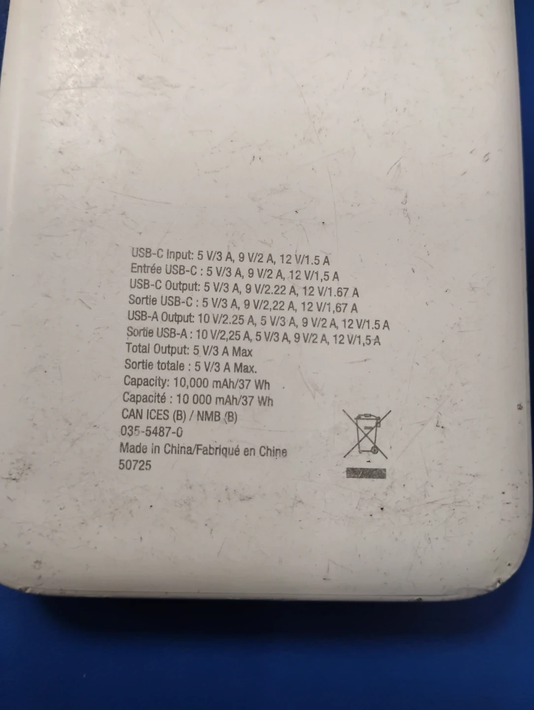 - USB-C Output: 5 V/3 A, 9 V/2.22 A, 12 V/1.67 A