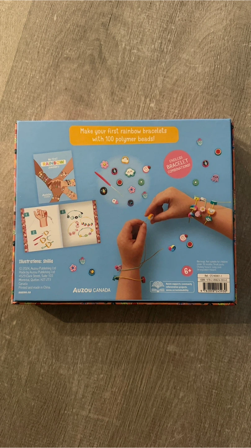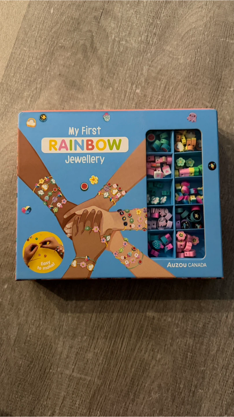 Selling a brand new Auzou Canada My First Rainbow Jewellery kit for children ages 6+. Make your first rainbow bracelets with 100 polymer beads.