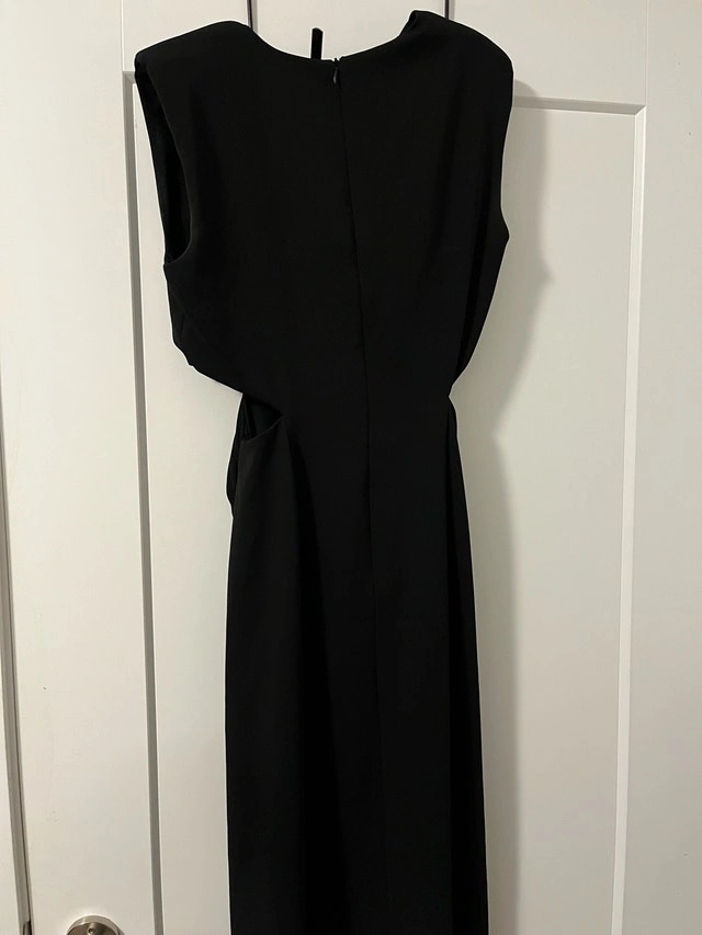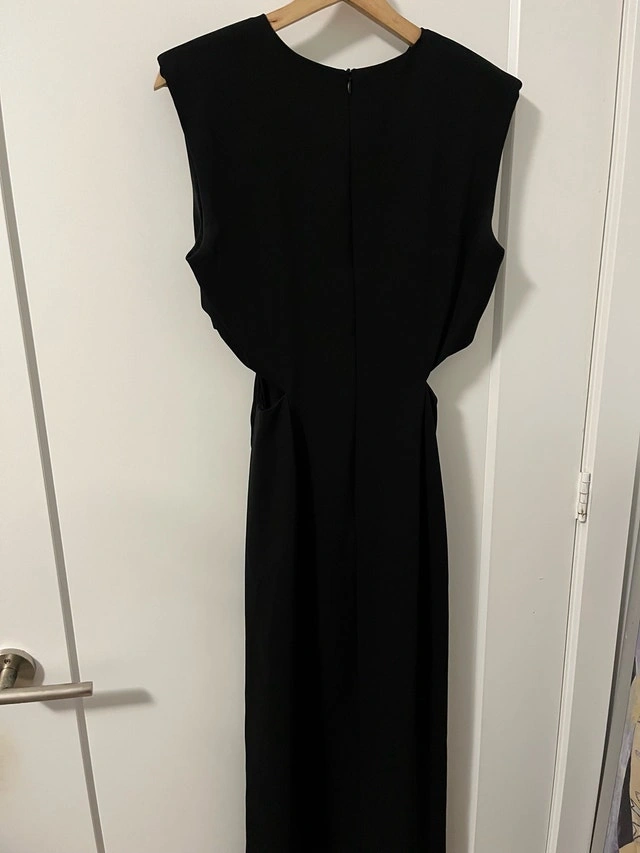This Zara black dress is a sleek and stylish piece, perfect for a night out. It features a unique side cutout design and a comfortable fit, making it both fashionable and easy to wear. This dress has been worn only a couple of times and is in excellent condition, ready to make a statement in your wardrobe.