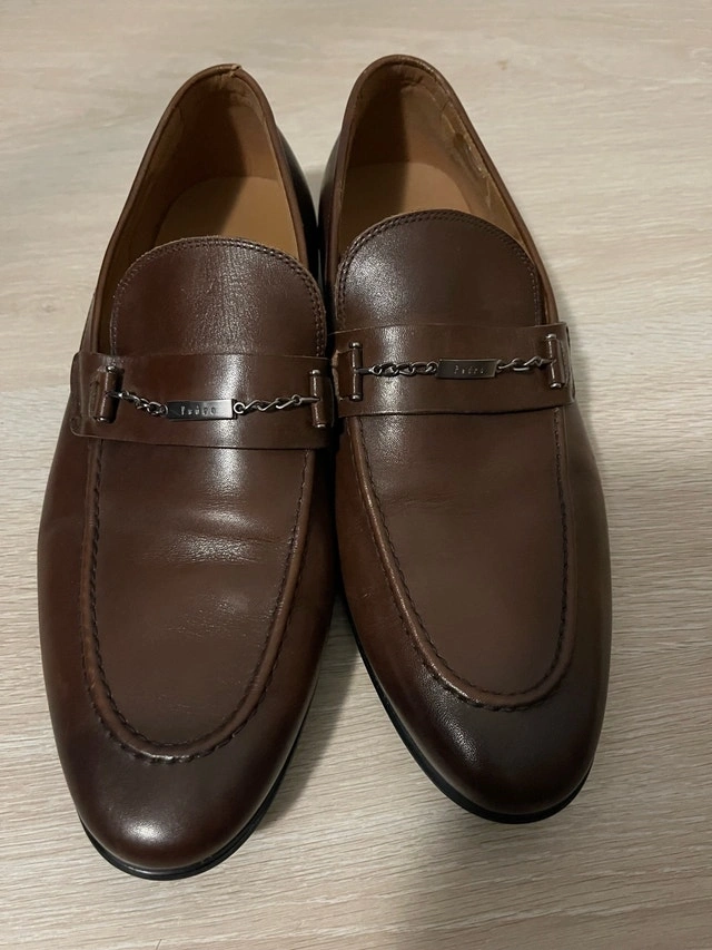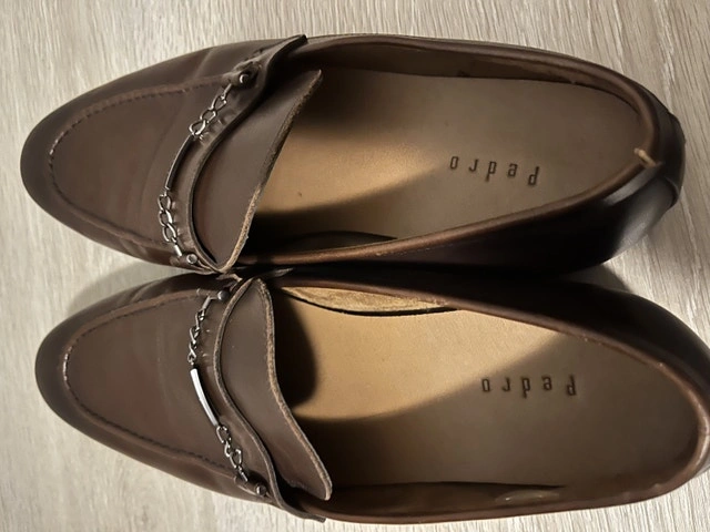 Step out in style with these suave Pedro brown leather loafers, perfect for elevating your everyday look. Size 9, these loafers have seen a few city strolls, which adds character to their already distinguished appearance.