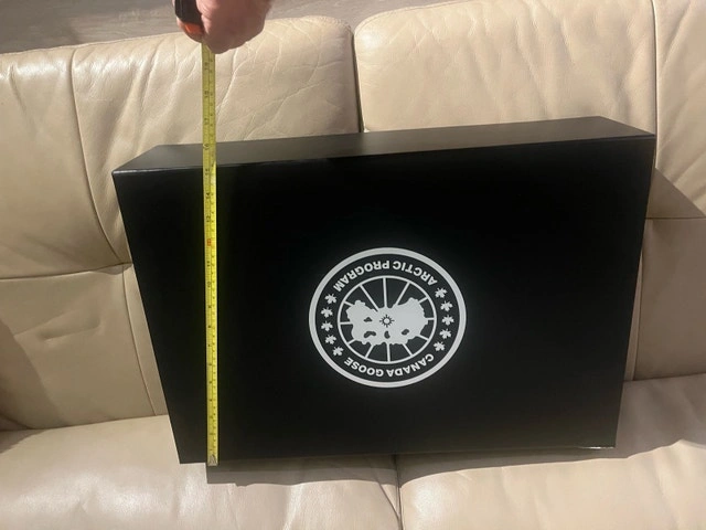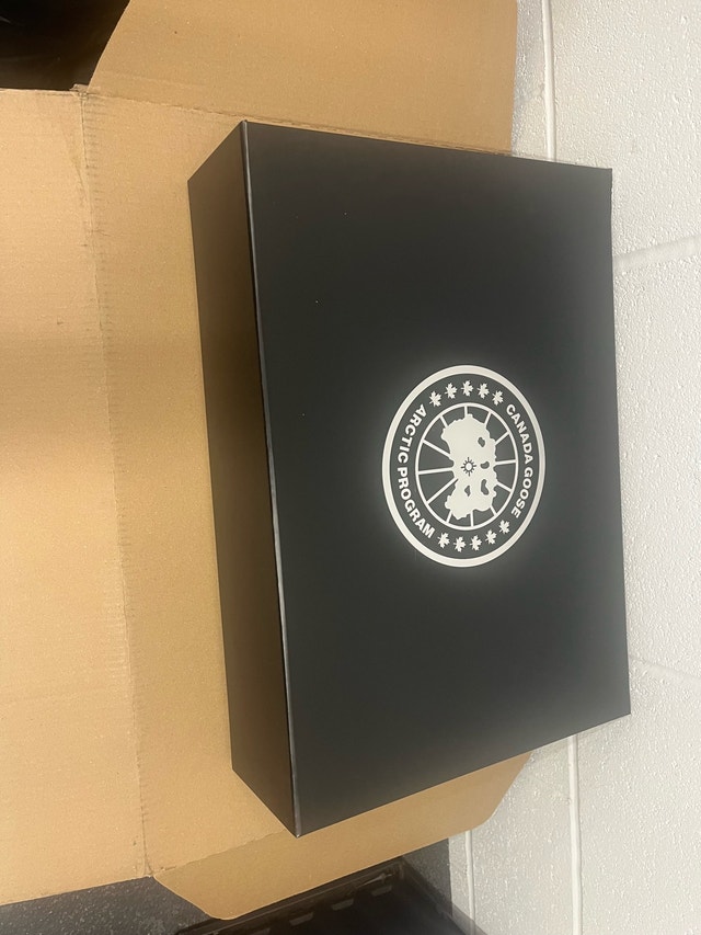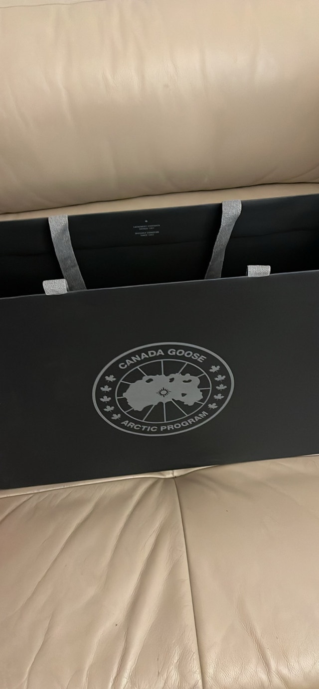 Selling a Canada Goose box in excellent condition, perfect for storing or gifting your Canada Goose apparel. Box dimensions are approximately 20x16x6 inches, providing ample space. This box adds a touch of luxury and authenticity to your Canada Goose experience. It is used and does not include the original Canada Goose apparel that it may have been packaged with originally. If the ad is up, it's available!