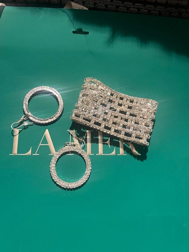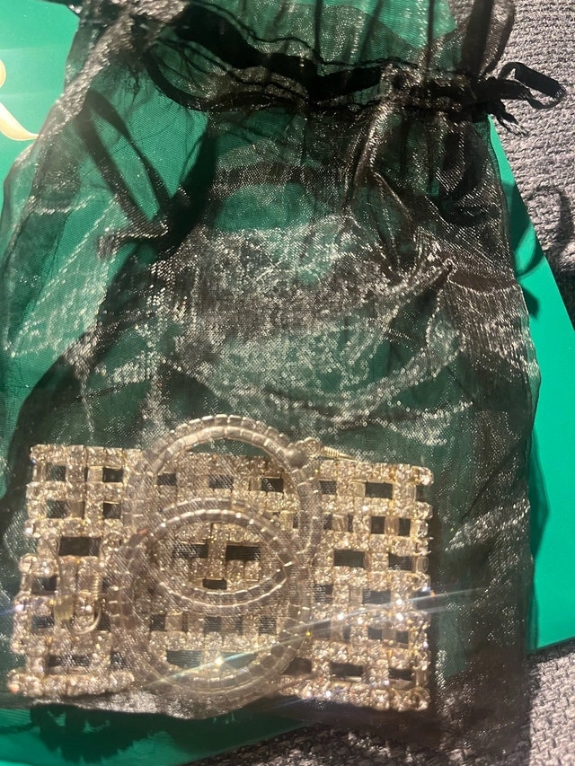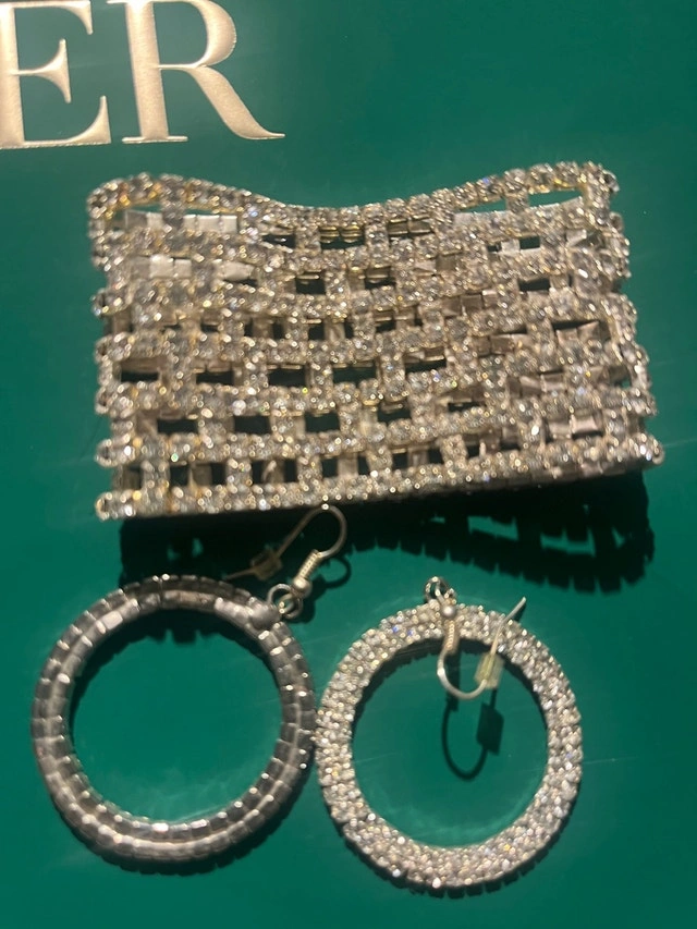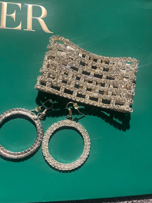 This dazzling jewellery set is sure to turn heads, featuring a stunning rhinestone bracelet and a pair of matching hoop earrings. The pieces are in good condition, sparkling brilliantly under any light. Get ready to add a touch of glamour to your look! If the ad is up, then it is still available!