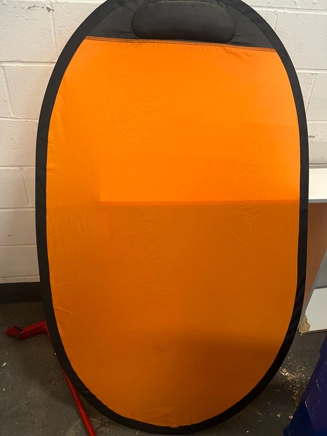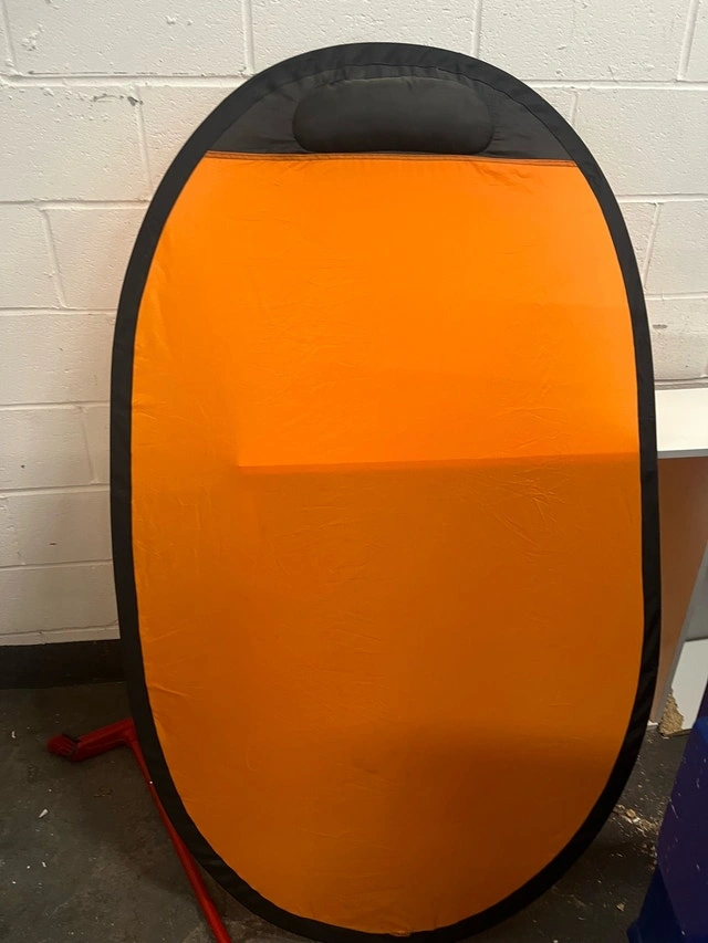 Boost your photos with this vibrant orange and black collapsible backdrop, perfect for portraits or product shots and easy to store. This backdrop has been used but is in good condition, ready to bring professional flair to your photography. Specifications: * Colour: Orange and black * Collapsible design for easy storage * Ideal for portrait and product photography. And yes, it's available if you're seeing this ad!