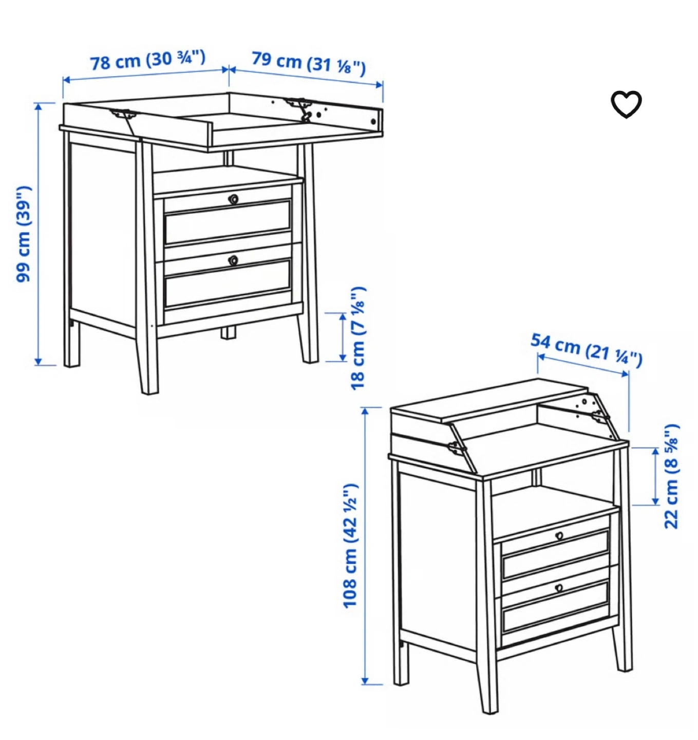 This piece converts into a dresser, so it can be used well beyond the diaper years. Solid wood and very sturdy. Used for less than a year and in good condition, with some minor cosmetic wear on the top edge (see photos).
