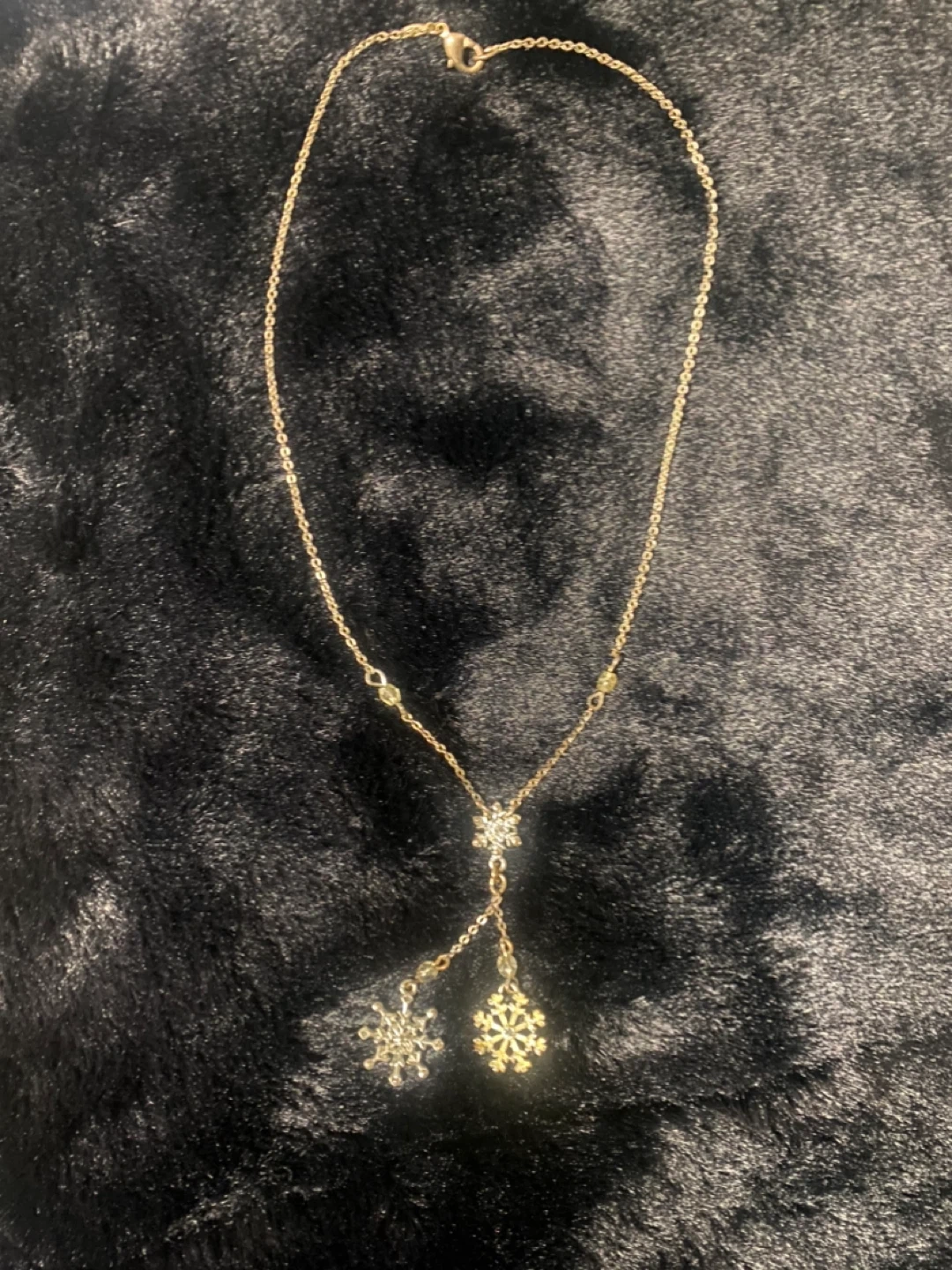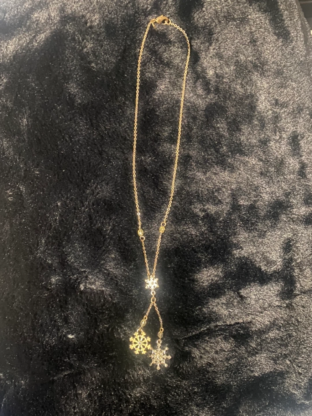Add a touch of winter elegance to any outfit with this gold-toned snowflake necklace! This pre-owned necklace features delicate snowflake pendants that dangle gracefully, catching the light with every move. The gold tone adds a warm and festive touch.