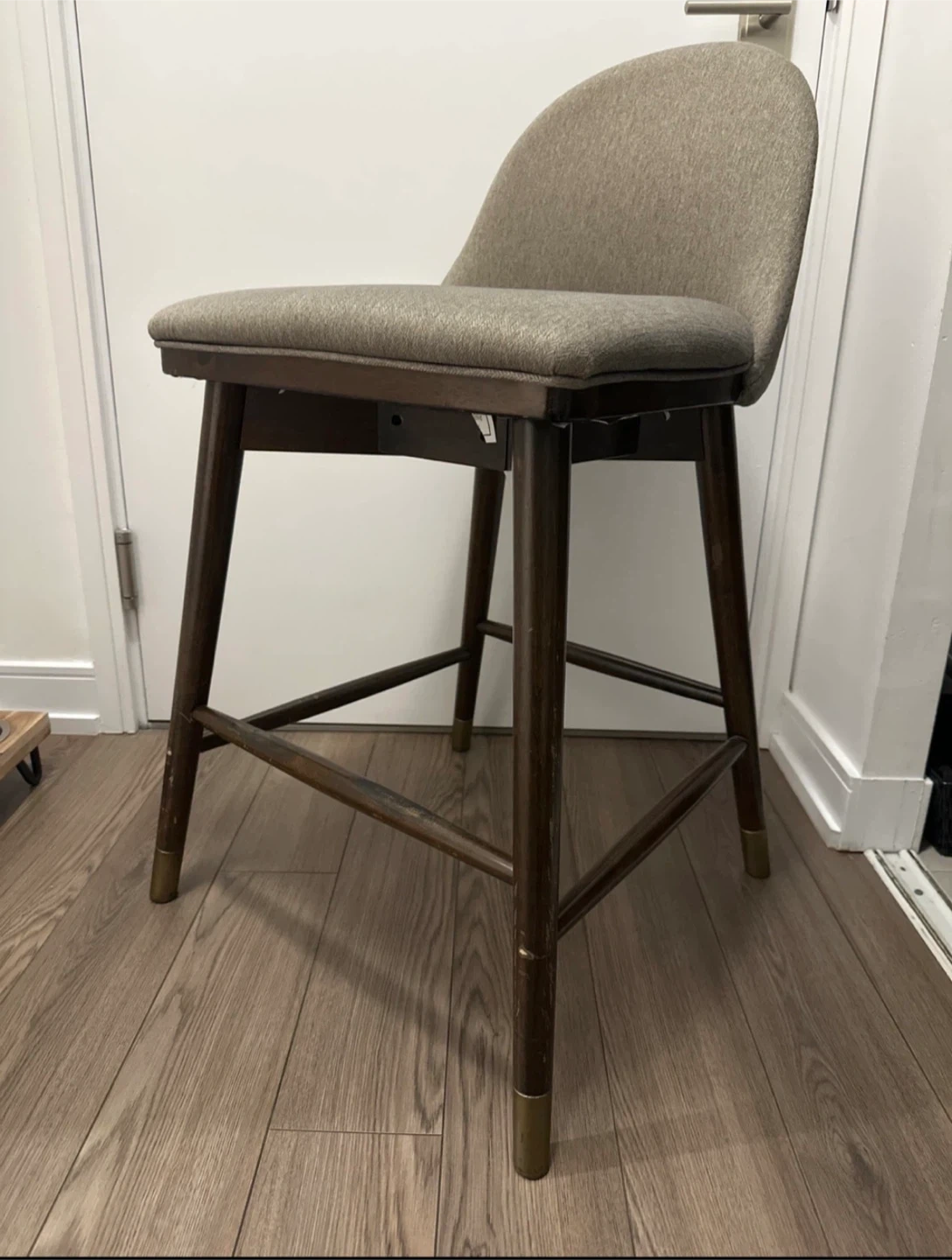 Selling a set of 4 counter height stools in good condition! They’re a stylish grey colour and would look great in any kitchen or bar area. The stools are sturdy and comfortable, perfect for enjoying a meal or having a chat with friends