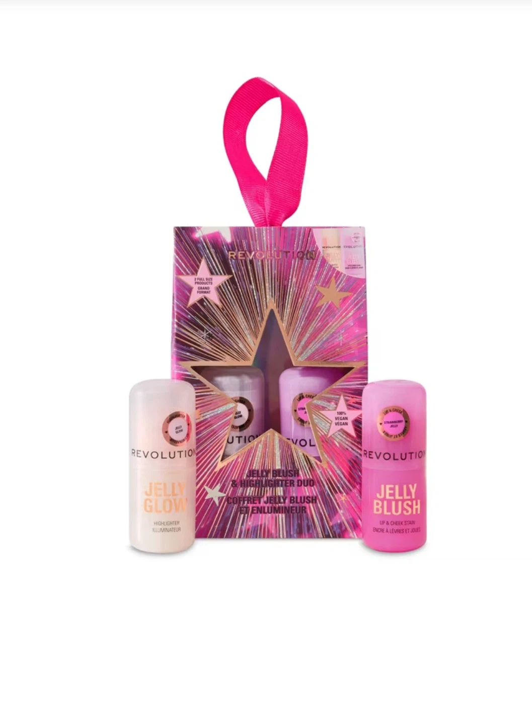 Selling a brand new Revolution Jelly Blush and Glow Duo! This set includes a Jelly Blush lip and cheek stain in Strawberry Pink and a Jelly Glow highlighter. Both are 100% vegan. Perfect for adding a pop of colour and glow to your makeup look.