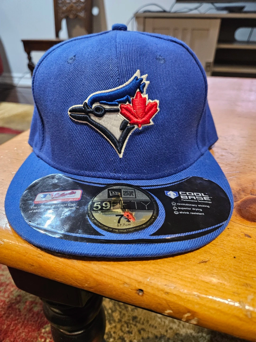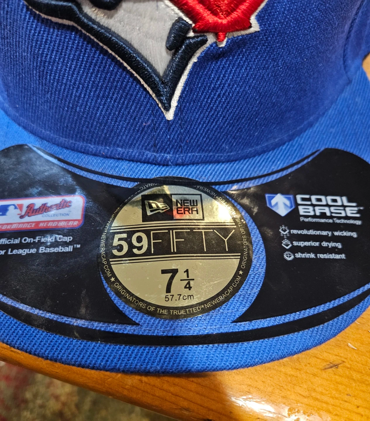 Selling a New Era 59FIFTY Toronto Blue Jays hat in size 7 1/4. It's brand new with the sticker still on! This hat features Cool Base technology for revolutionary wicking, superior drying, and shrink resistance. Show your Blue Jays pride!