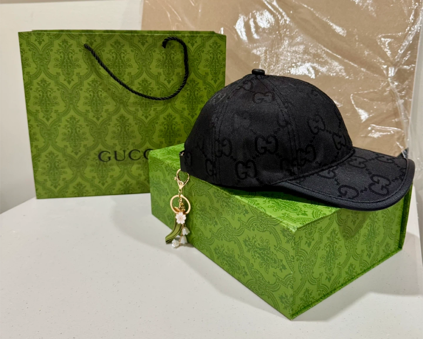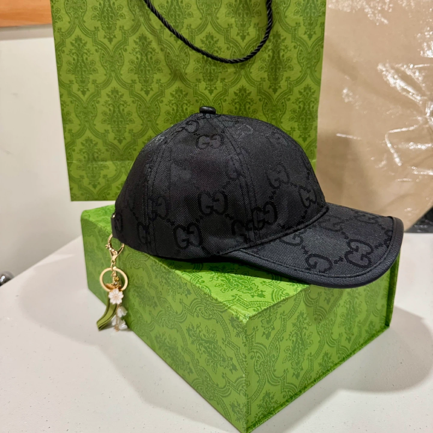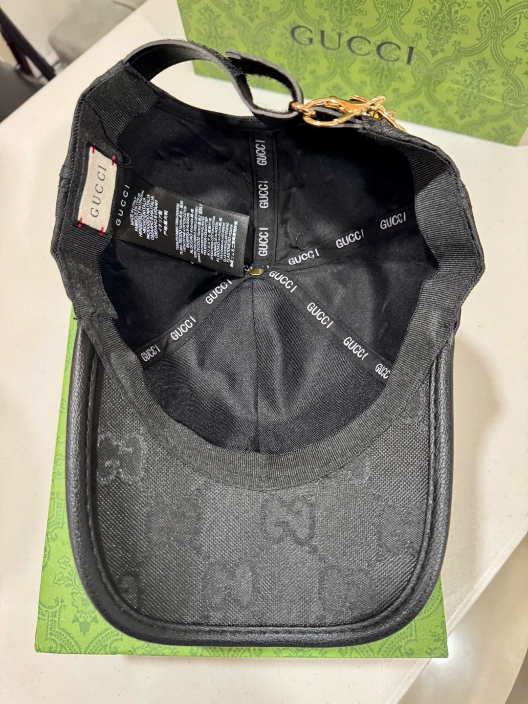 Selling a stylish Gucci baseball hat in black GG canvas! It's in great condition and comes with the box.