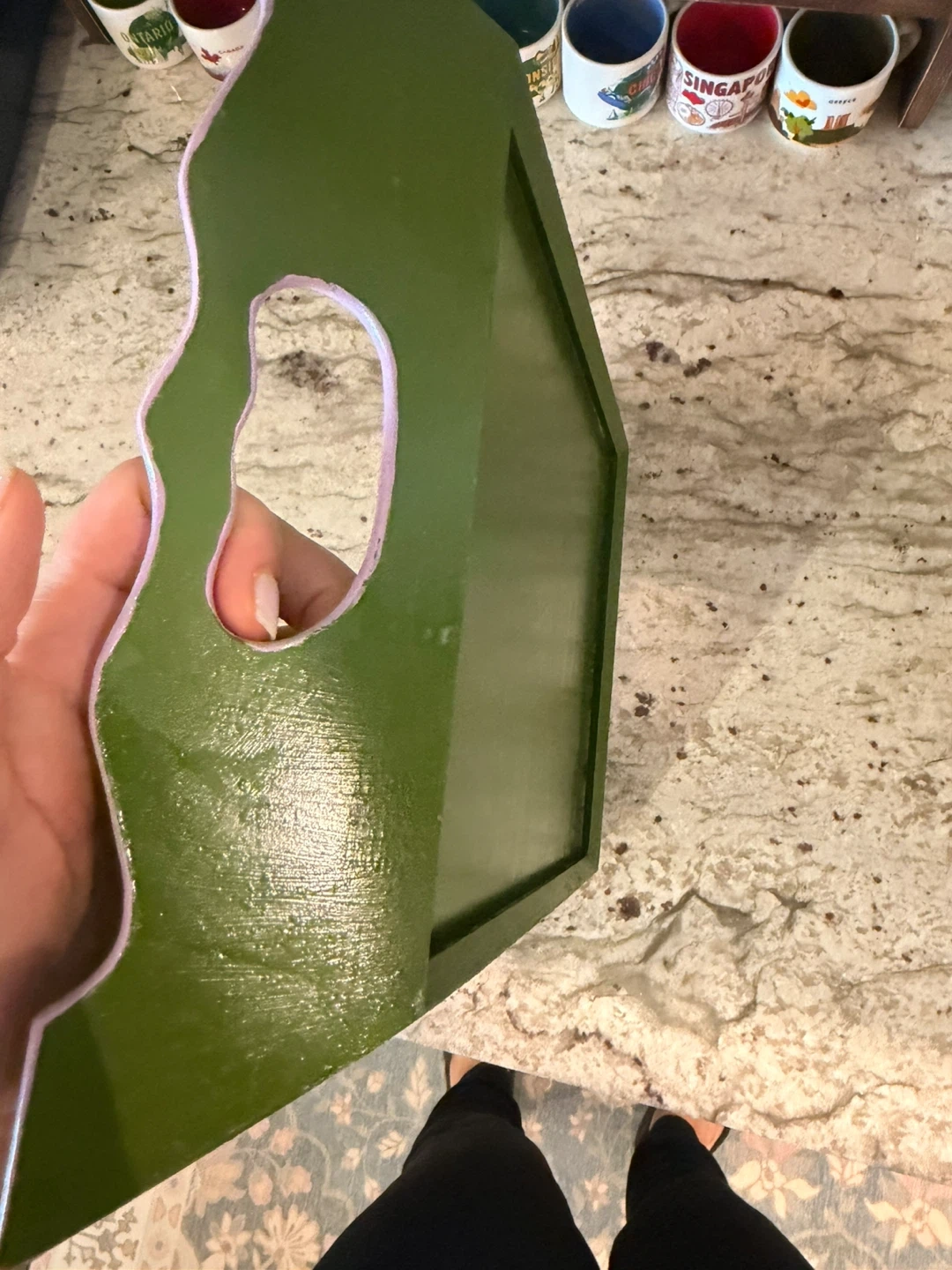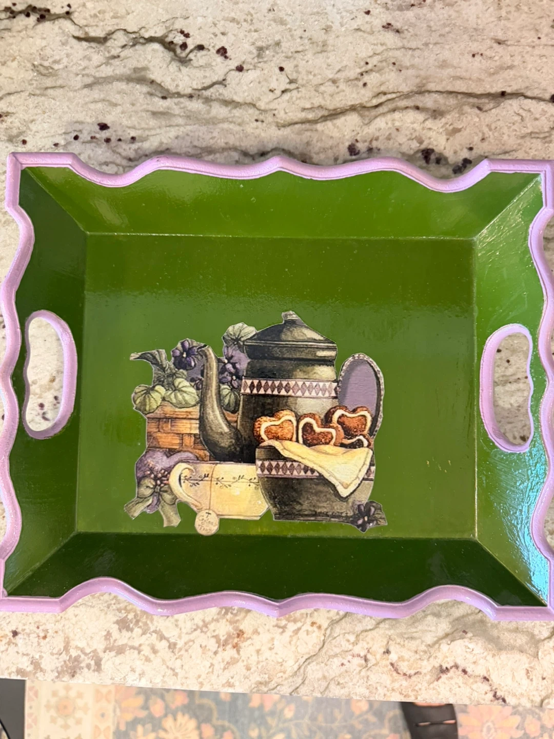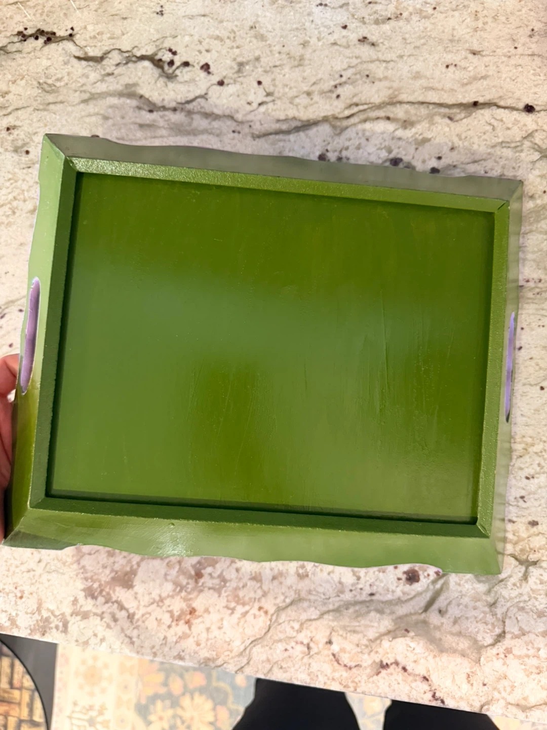Selling a cute hand made decorative serving tray! It's green with a lovely design. Perfect for adding a touch of charm to your home decor