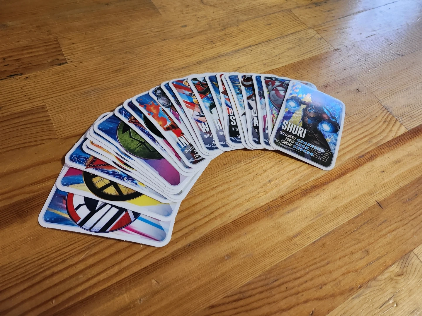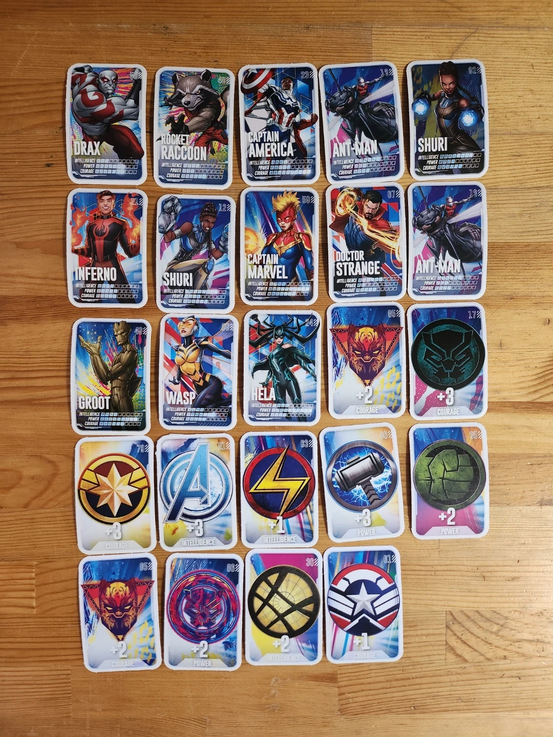Set of 2024 Loblaws Marvel superhero trading cards. Great for collectors or fans of the Marvel universe. Includes characters like Shuri, Rocket Raccoon, Captain America, and more!