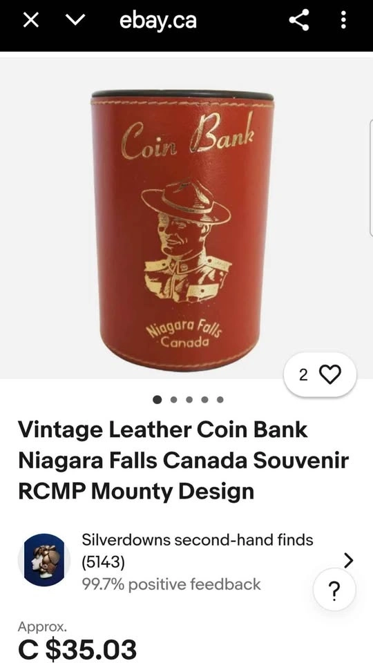 Buy & SellVintage Leather Niagara Falls Mountie Bank (1950's?)Vintage Leather Niagara Falls Mountie Bank (1950's?)$20Pick up Richmond Rd and Pinecrest areaWHERE TO MEETCheck LocationView MapSELLERTraceyWhitehaven100 reviews0 chats·0 favorites·0 viewsSEND CHAT TO SELLERHi Tracey! I’m interested in your listing.Hi Tracey! I’m interested in your listing.Get the Karrot app to chatSign In to chat