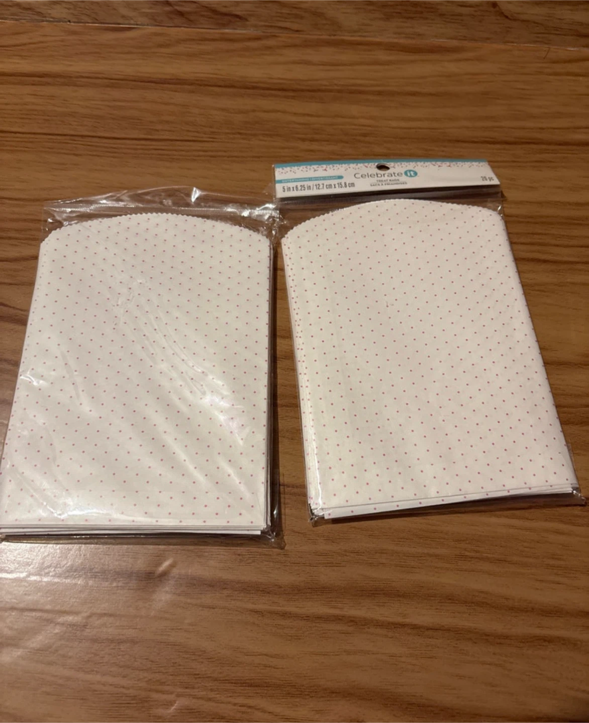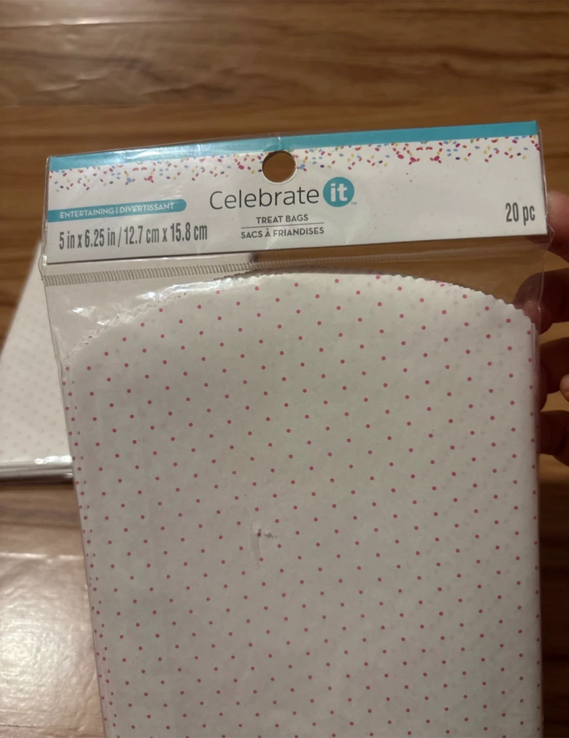 I am selling Celebrate It treat bags, perfect for parties and small gifts. These bags measure 5 x 6.25 inches. They feature a cute polka dot design. These are new in packaging. Perfect for adding a personal touch to any event!
