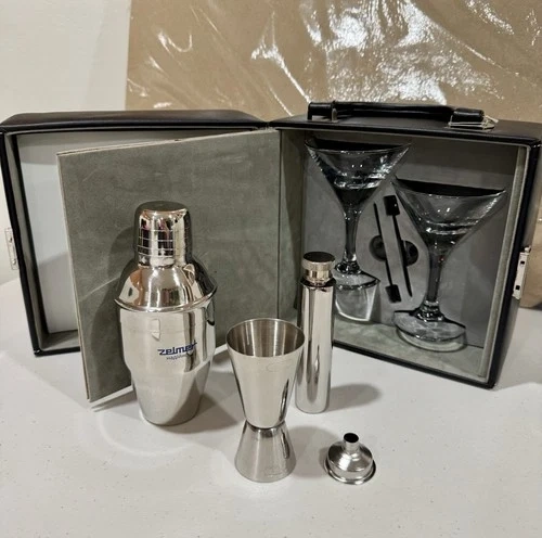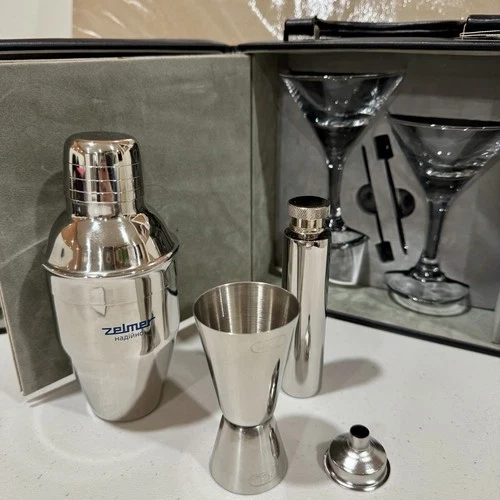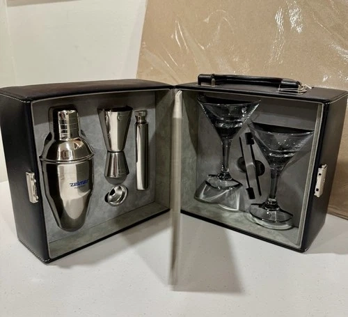 Stylish travel cocktail set by Zelmer in a black hard case with locking closure and key.