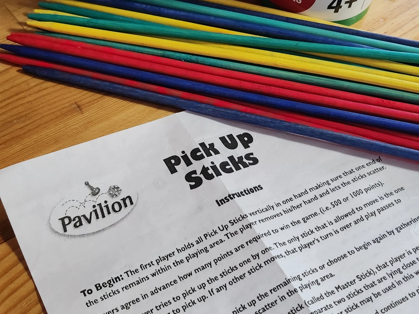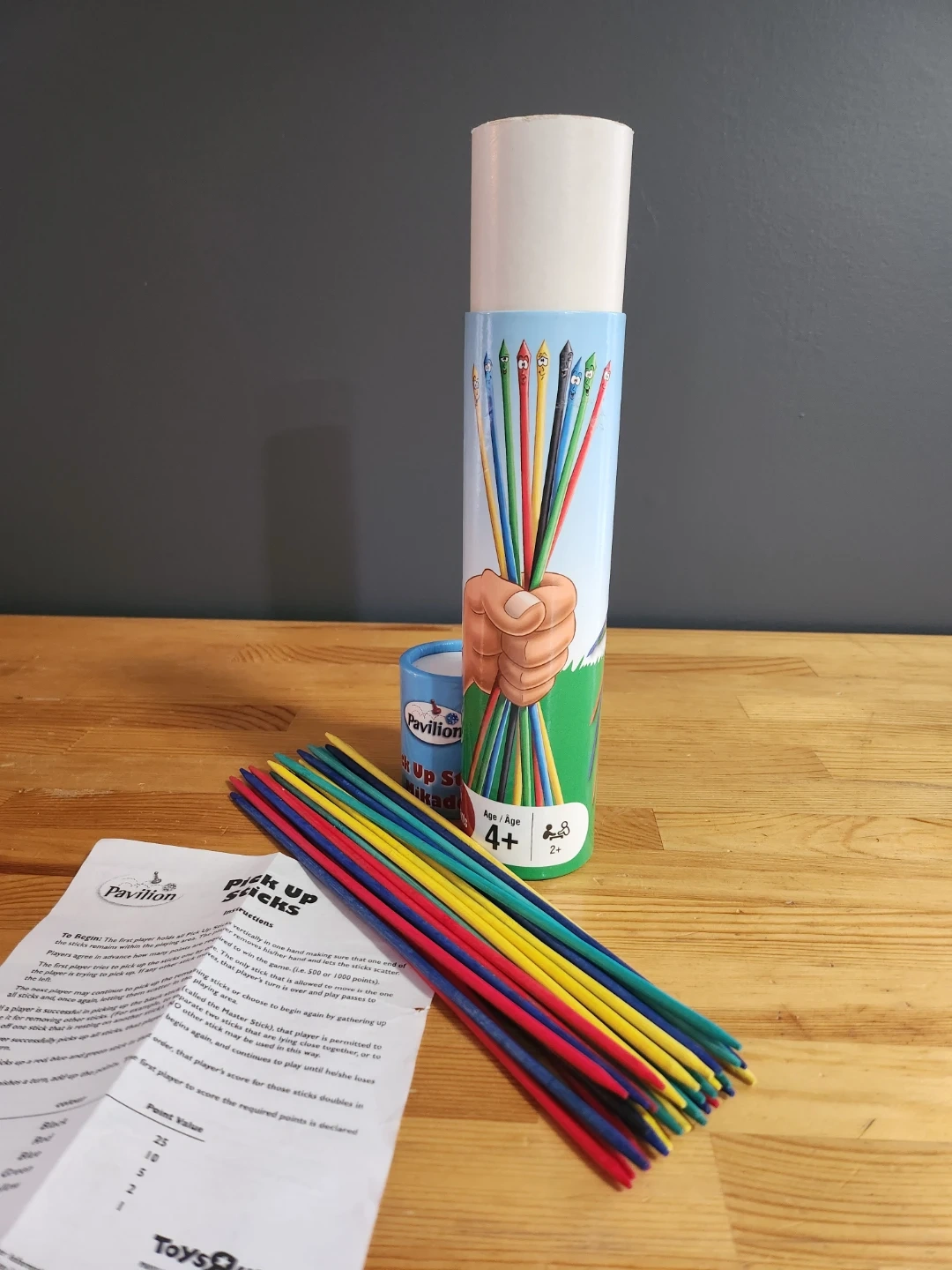 Get ready for some fun with this classic game of Pick Up Sticks! This set by Pavilion is perfect for ages 4 and up. It includes all the sticks and instructions you need for a great time with family and friends.