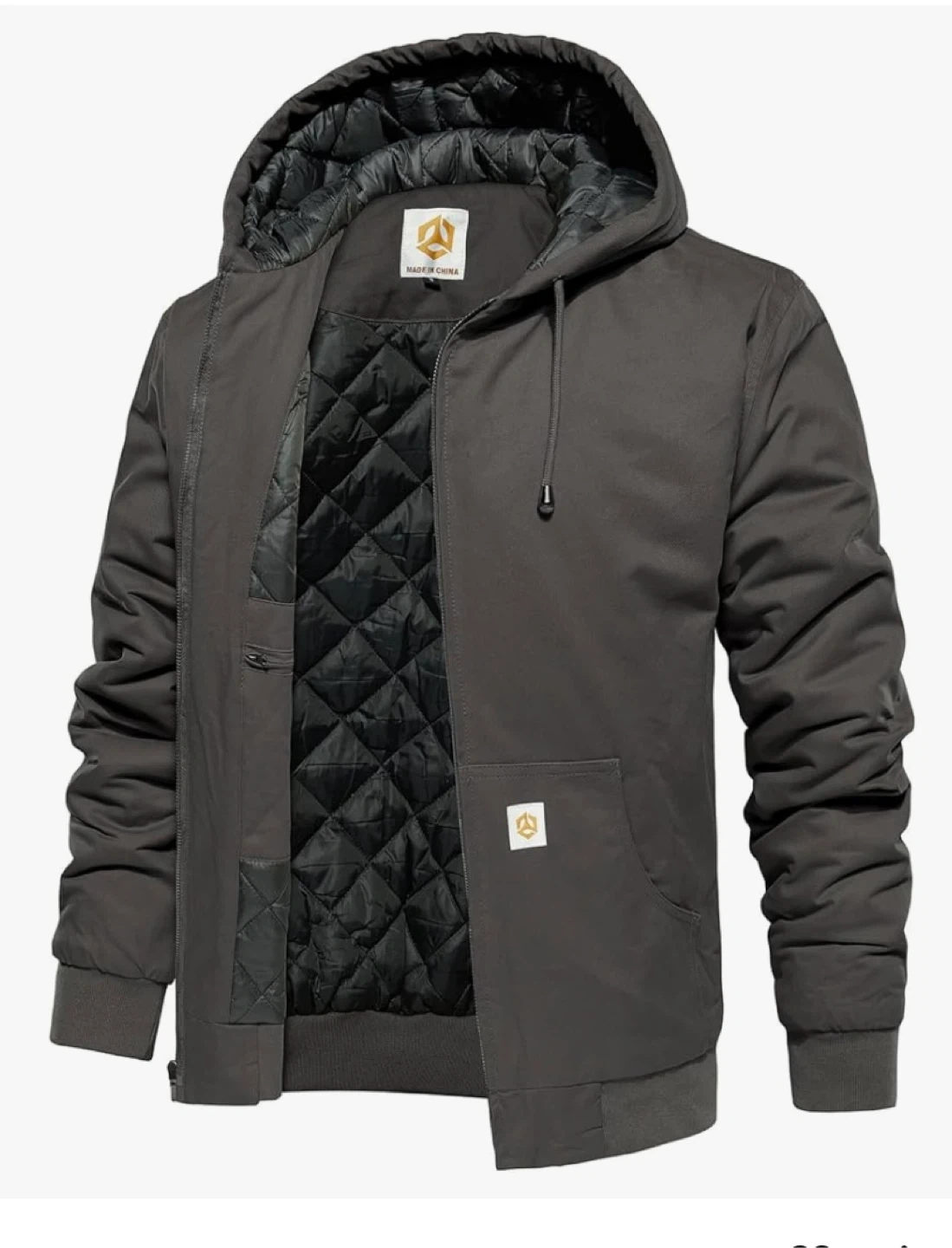 Selling a men's hooded jacket in size S It's a stylish grey colour with a quilted lining. Perfect for staying warm and looking good!