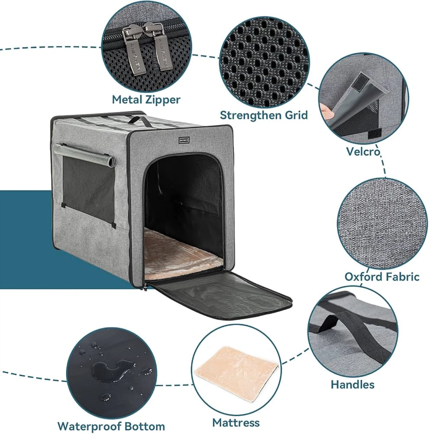 Easy to Fold, Sturdy and Portable, Perfect for Traveling, Soft Sided Dog Crate Grey