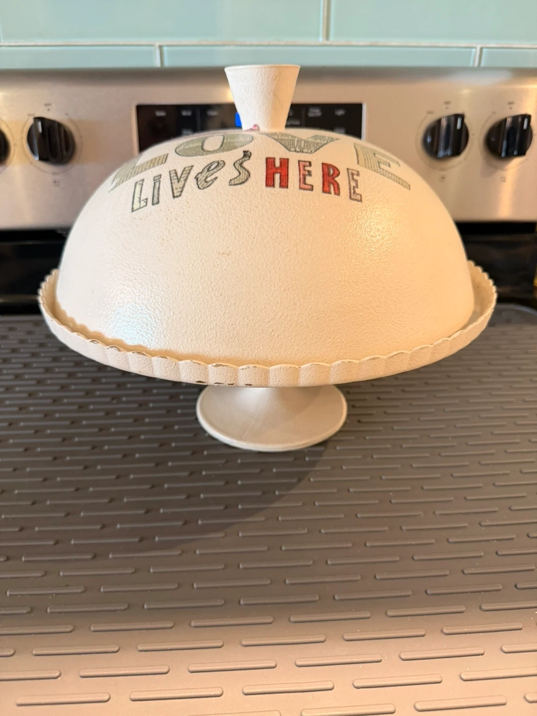 Hand made Cake Stand with Lid - 'Love Lives Here'