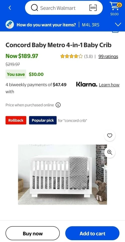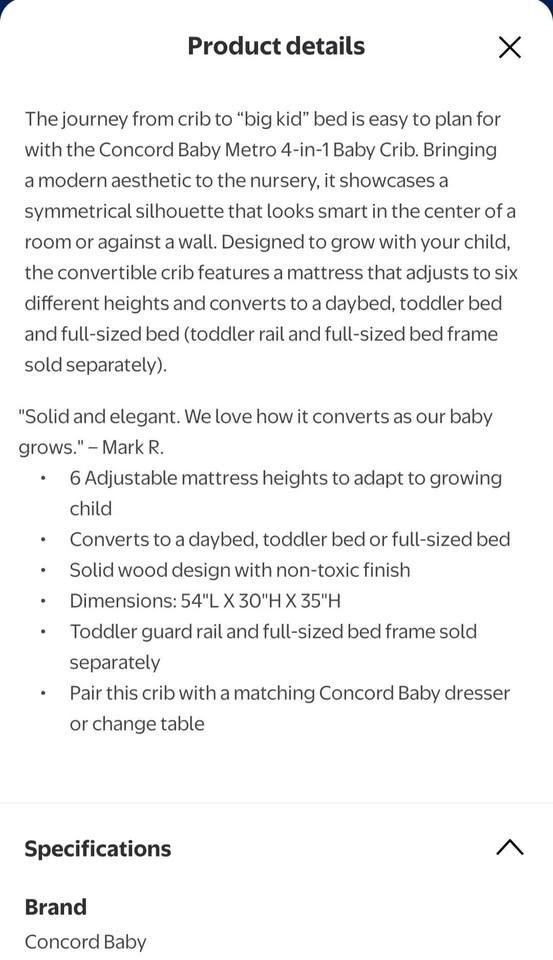 Concord Baby 4-in-1 Crib with or without mattress