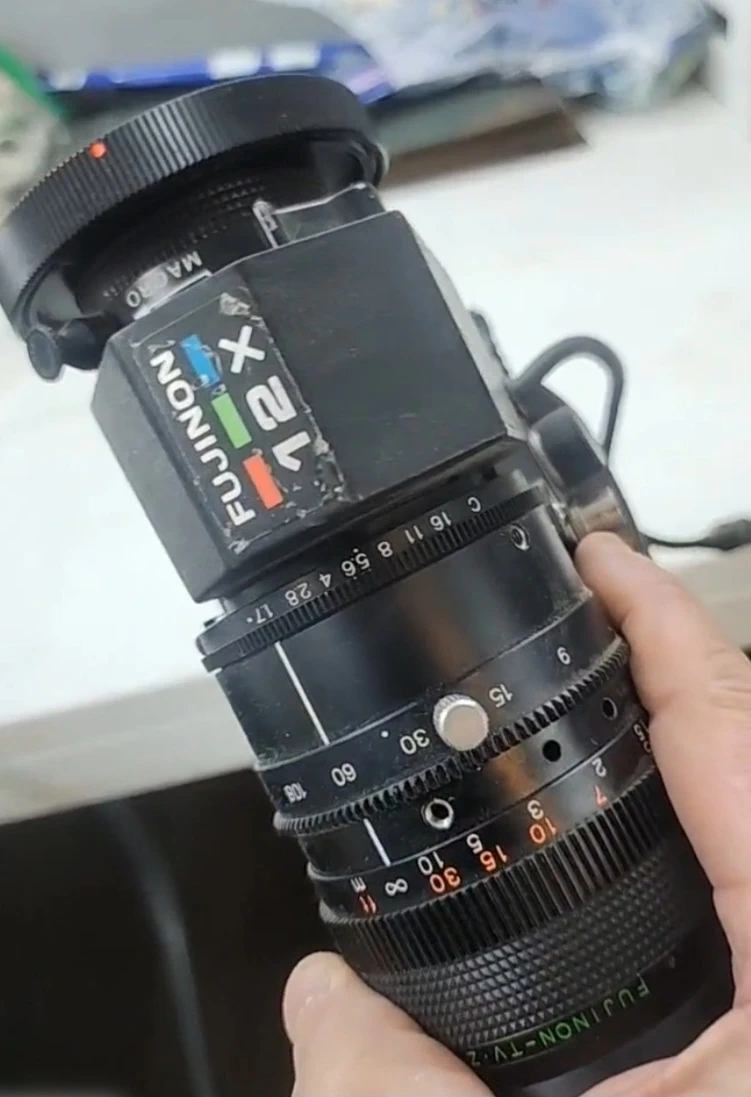 Selling a Fujinon A12x9F ERM-71 lens! It's in good condition and ready for your next project. This lens features 1:1.7/9-108mm. Untested was found in a storage unit as is