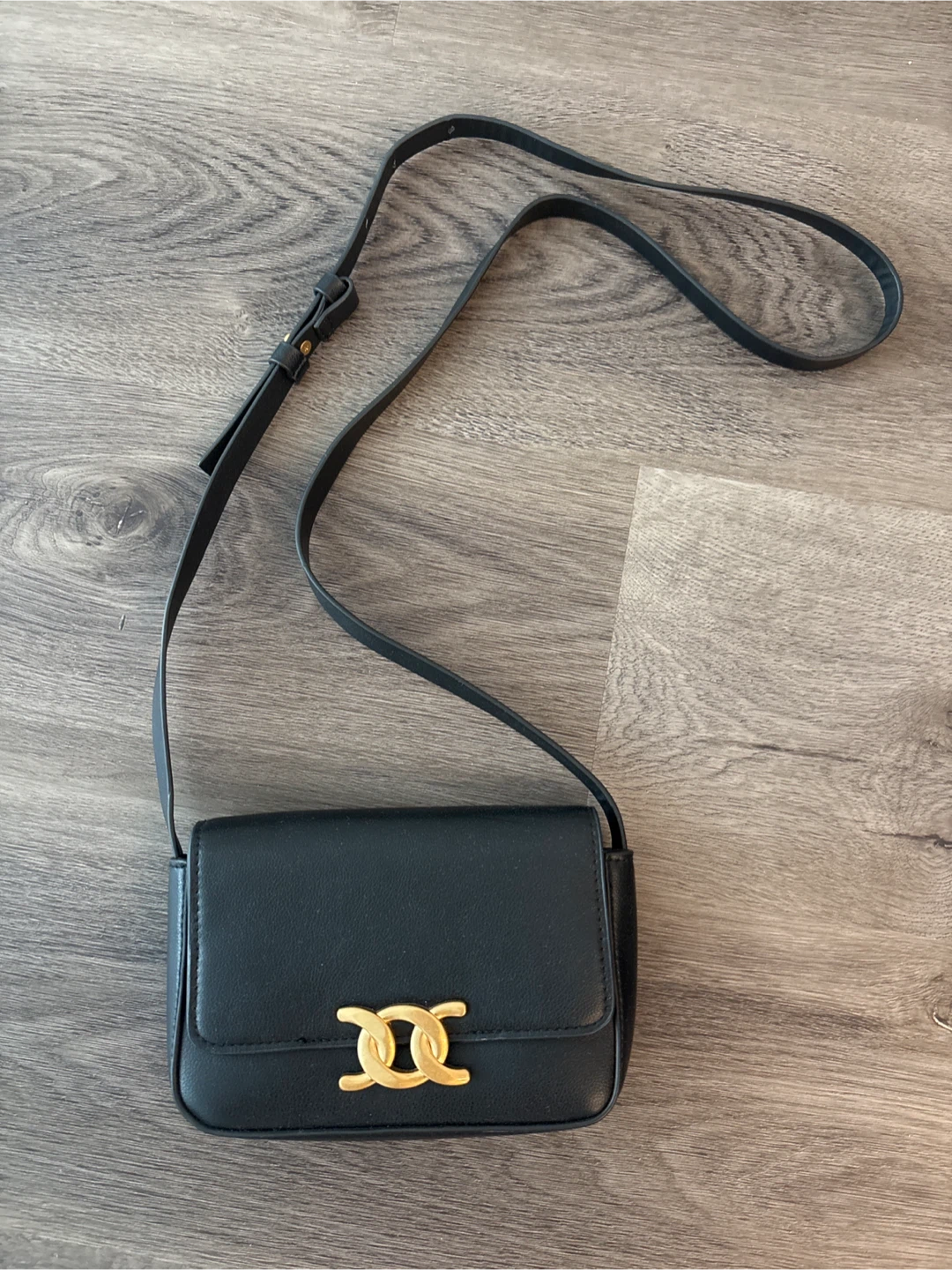 Selling a stylish “Celine Triomphe” inspired crossbody bag in black leather. It's in great condition and perfect for everyday use!