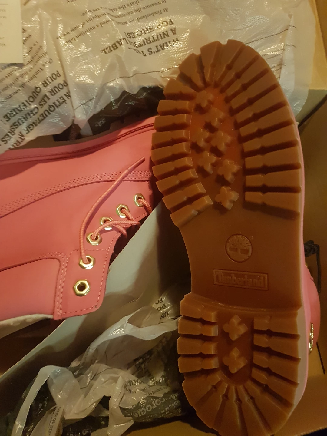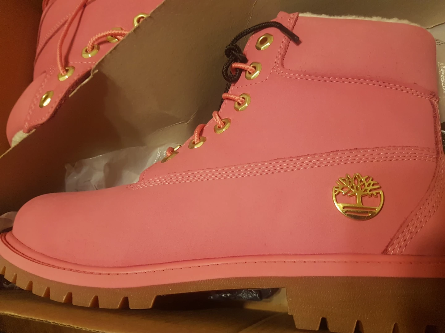 Selling a pair of brand new Timberland boots in a lovely pink colour! They come with the original box. Perfect for adding a pop of colour to your wardrobe! Gold hardware. Waterproof!