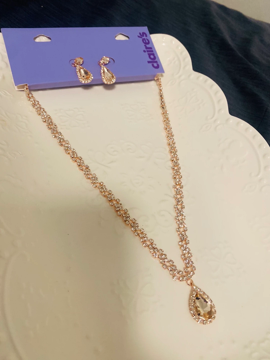New (Unused) Claire's Rose Gold Necklace & Earring Set - New