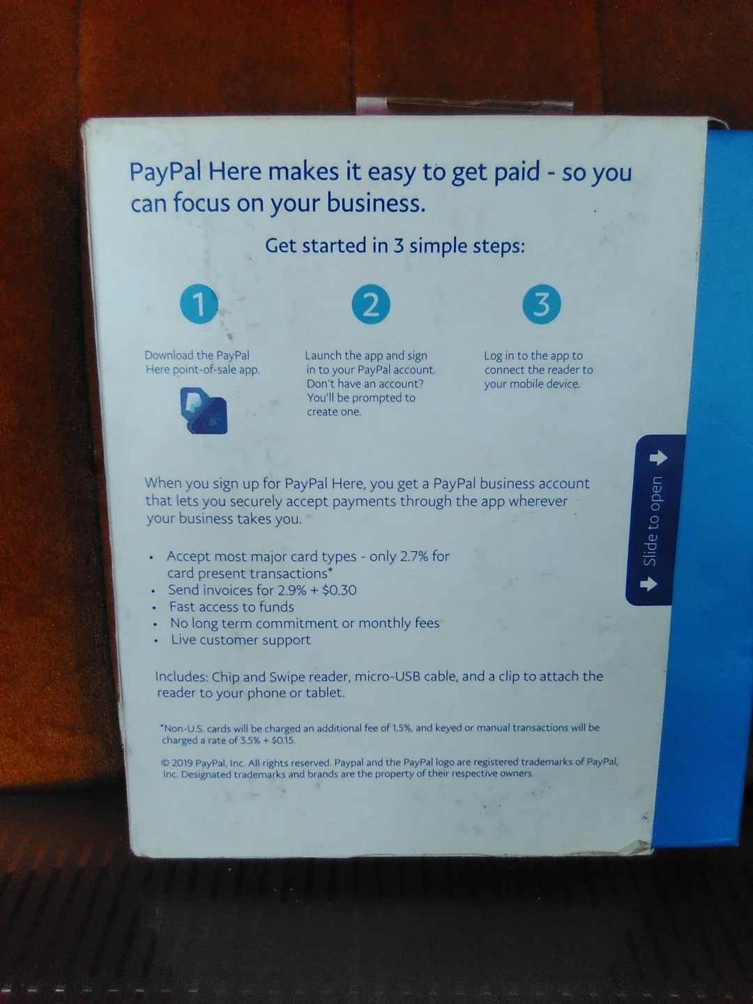 Selling a new PayPal Here chip and swipe reader! It comes in the original box and includes the chip and swipe reader, micro-USB cable, and a clip to attach the reader to your phone or tablet