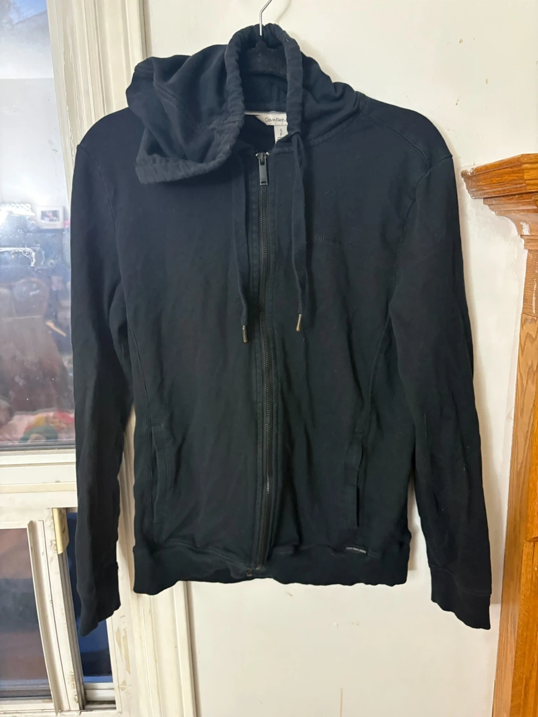 Selling a Calvin Klein Jeans black hoodie in size small. It's in great condition and ready for a new owner! Perfect for layering or wearing on its own.