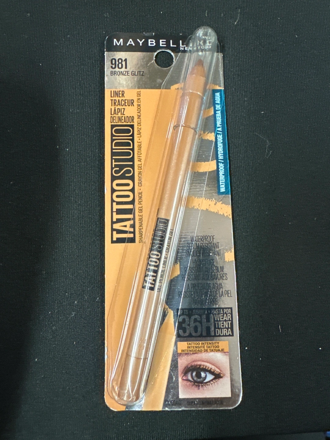 I'm selling a brand new Maybelline Tattoo Studio eyeliner in Bronze Glitz! It's a sharpenable gel pencil that's waterproof and lasts up to 36 hours. Perfect for creating a long-lasting tattoo intensity look