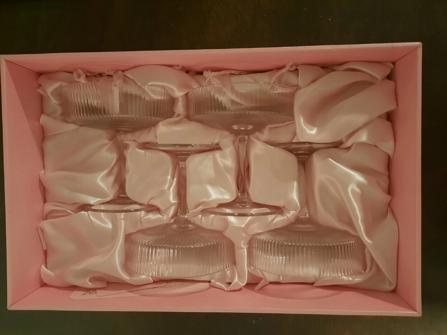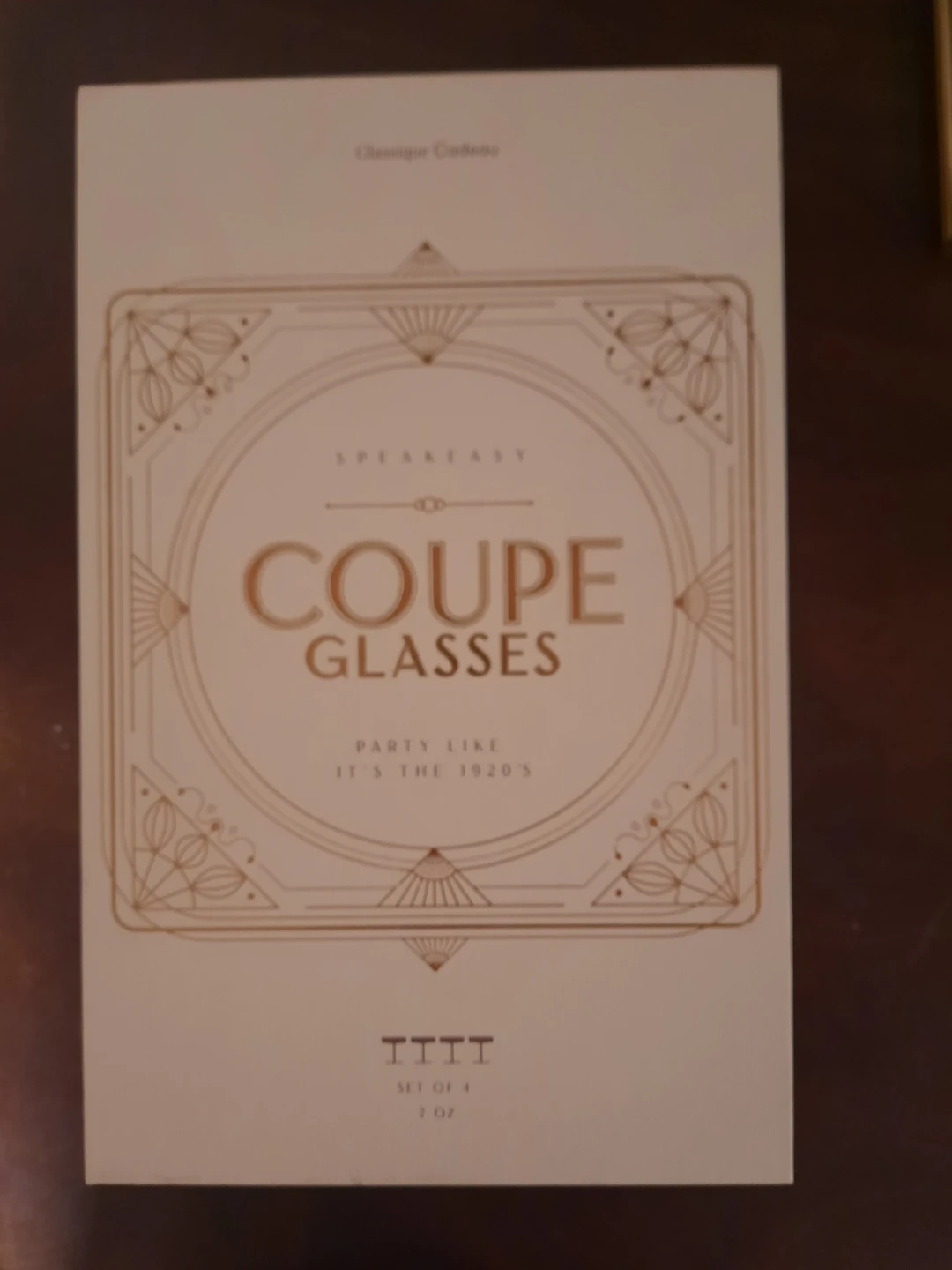 Selling a set of 4 Speakeasy Coupe Glasses! These 7oz glasses are perfect for partying like it's the 1920s. Comes in the original box, ready to add a touch of vintage elegance to your next gathering
