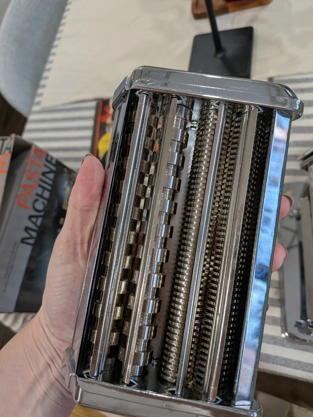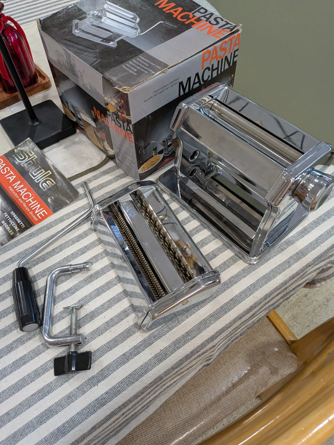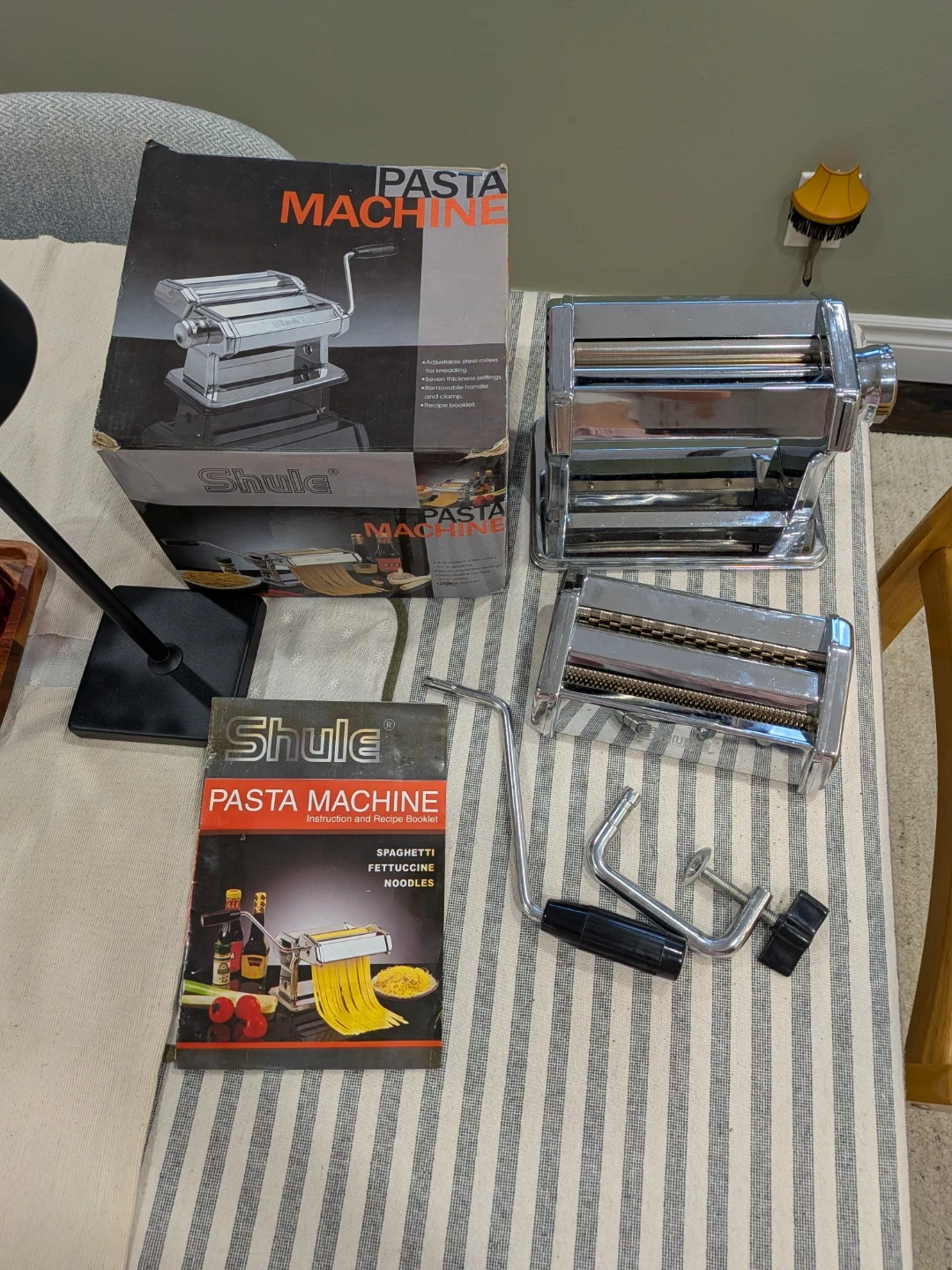 Make your own pasta! Stainless steel Shule pasta machine. Helps you make spaghetti, fettacine, noodles. In practically new condition, just the box is looking a little old from storage.