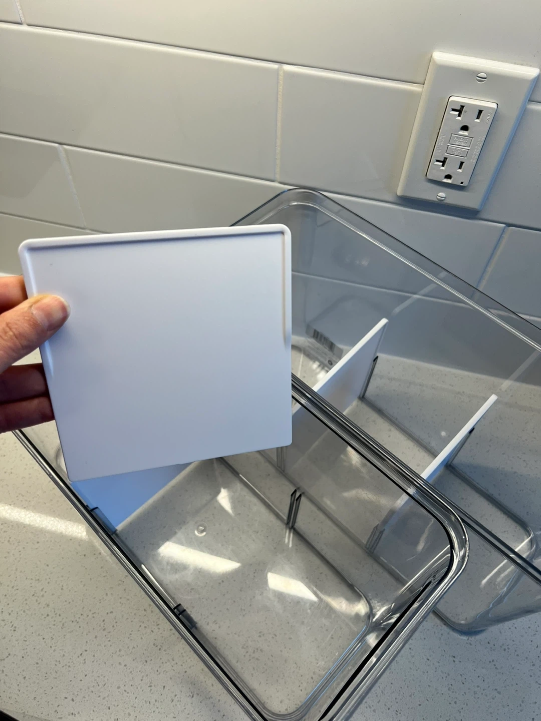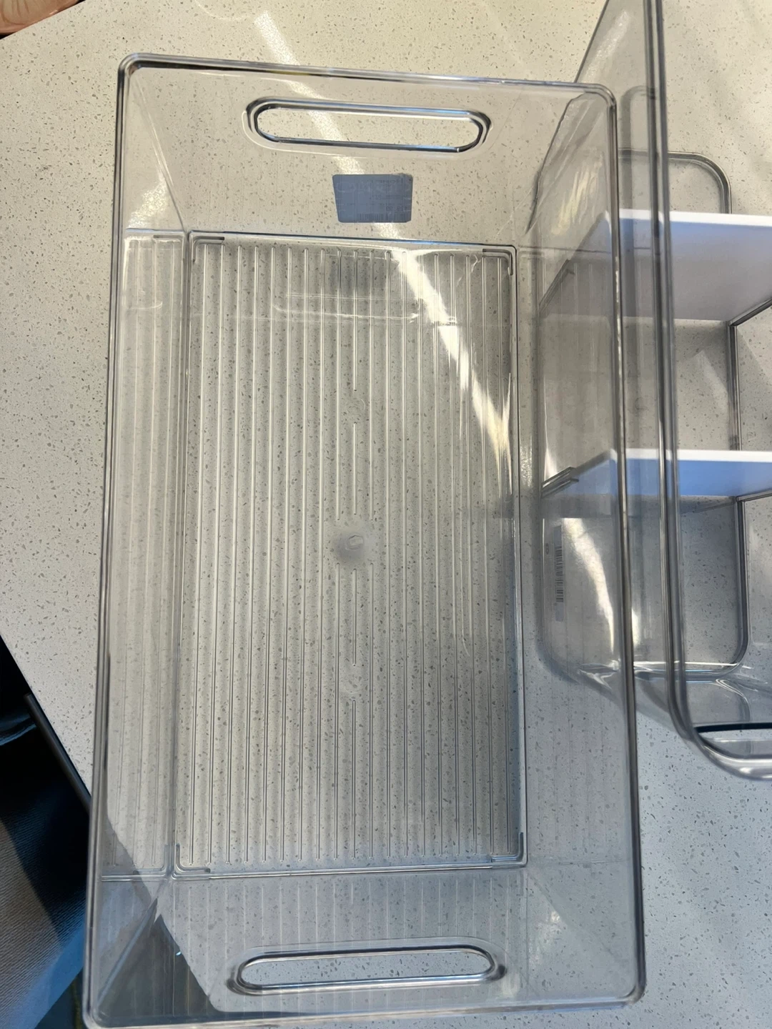 Includes: 2x divider bins (These come with removable white dividers, so you can adjust the compartment size or remove them completely) and 1x Large open bin.
