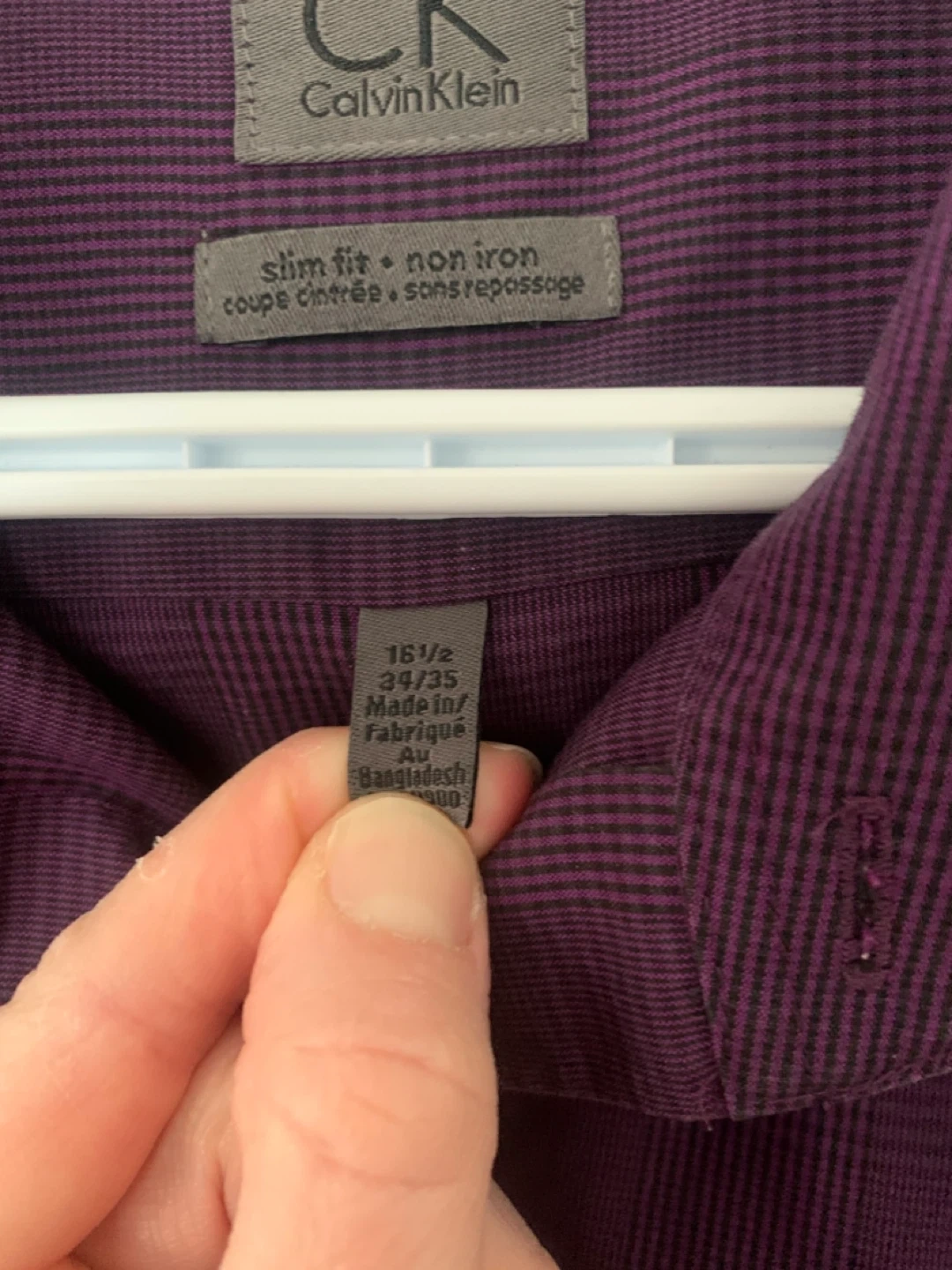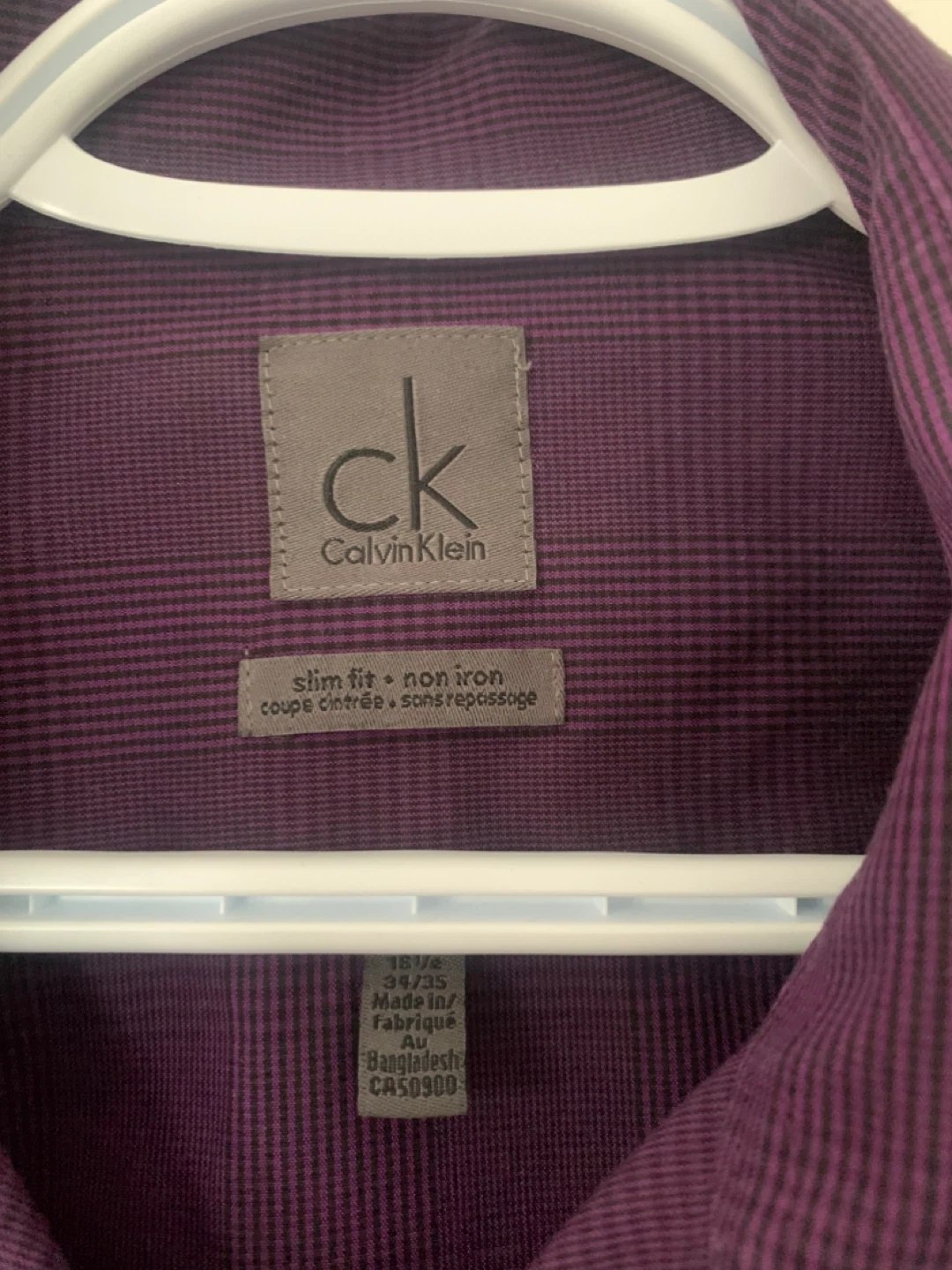 Selling a Calvin Klein dress shirt in great condition! It's a slim fit, non-iron style, and made from 100% cotton. The size is 16 1/2 - 34/35.