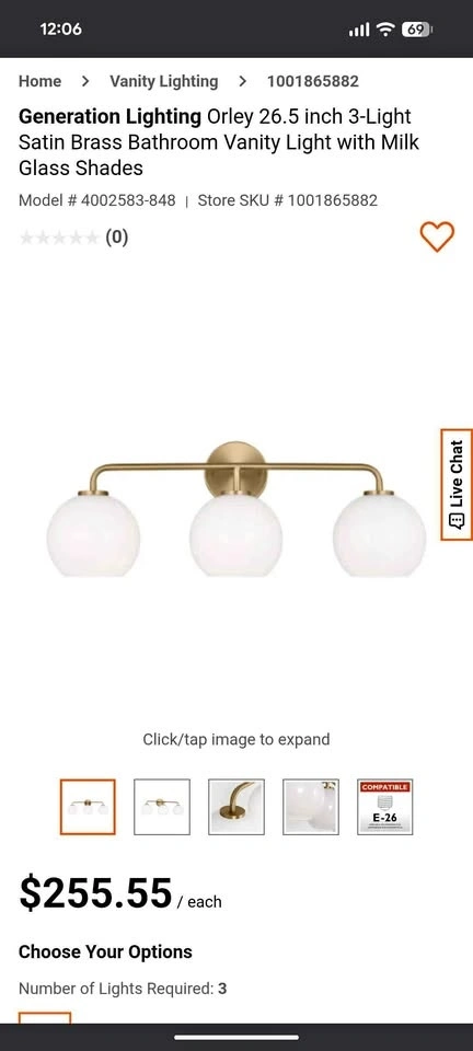 Brand New: Generation Lighting® Orley 26.5” 3-Light Bathroom Vanity Light