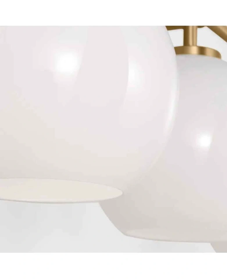 Influenced by the vintage industrial designs of early 20th Century America, the transitional Orley lighting collection has milk glass shades and Midnight Black or Satin Brass finish, adding a layer of retro design to the warm look.