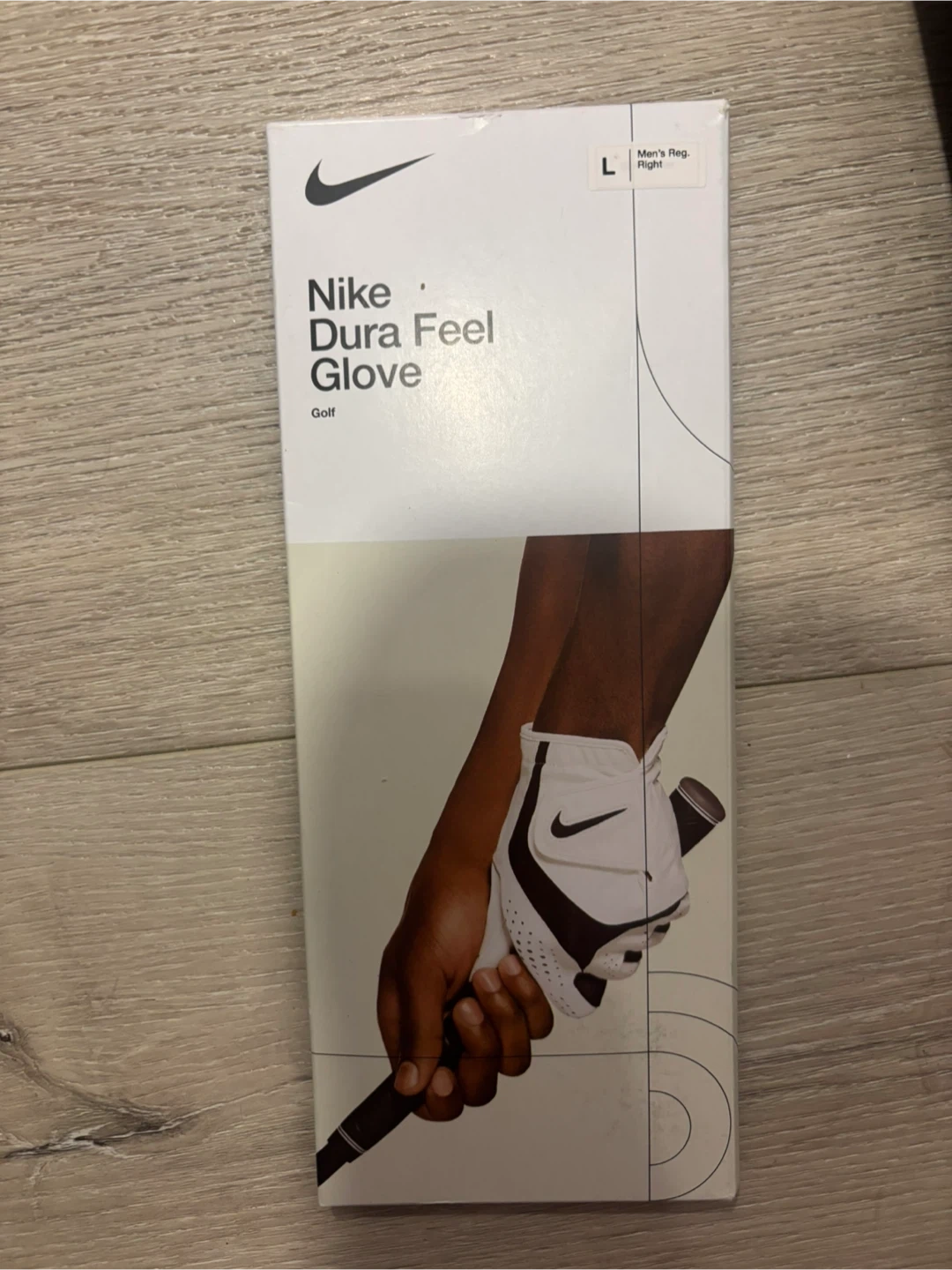 Selling a brand new in box Nike Dura Feel Golf Glove in men's regular right, size large. It comes in the original box. The retail price was C$15.