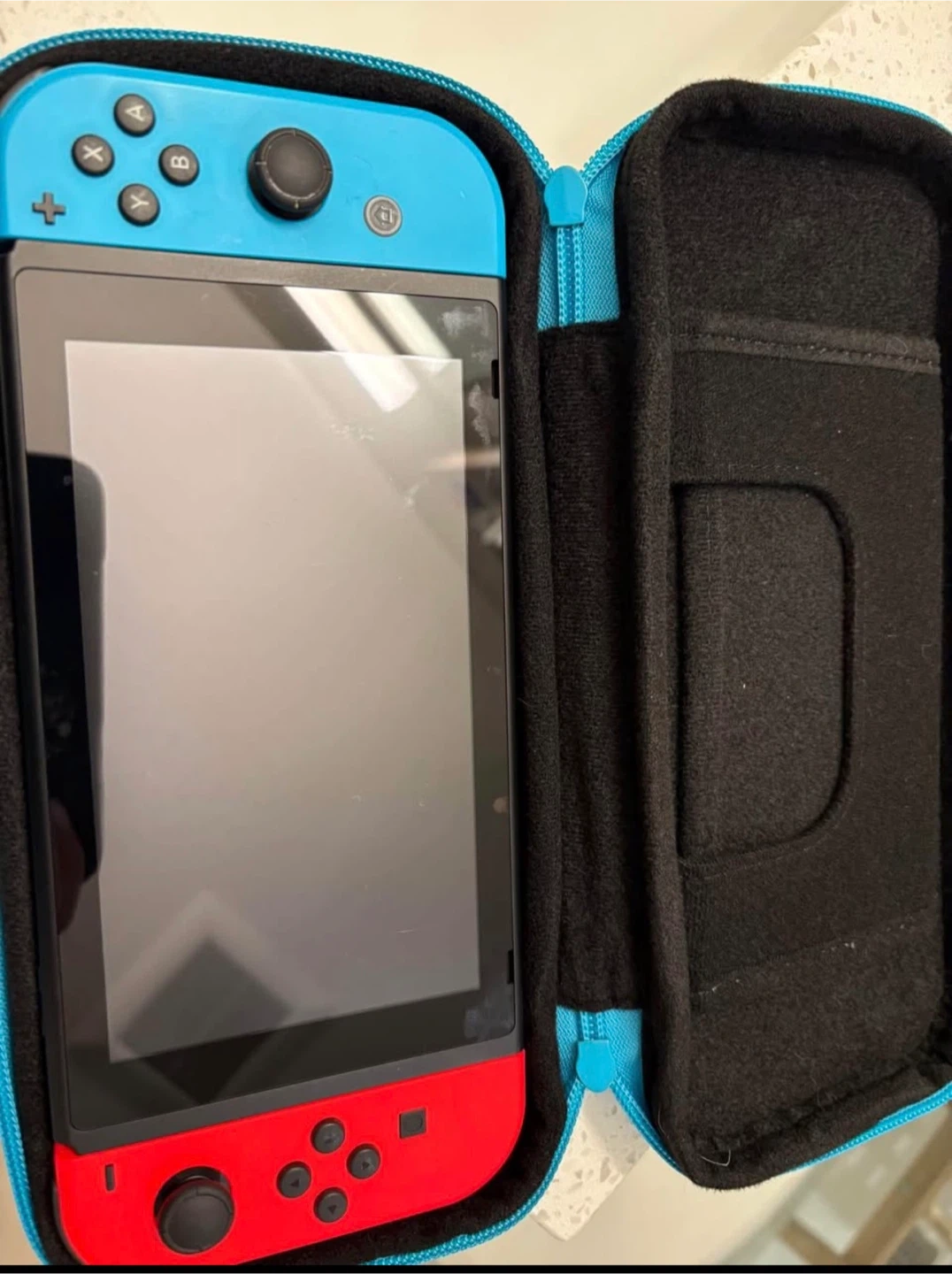 Selling a Nintendo Switch with a carrying case. The console is in good condition and ready for a new owner! Perfect for gaming on the go or at home