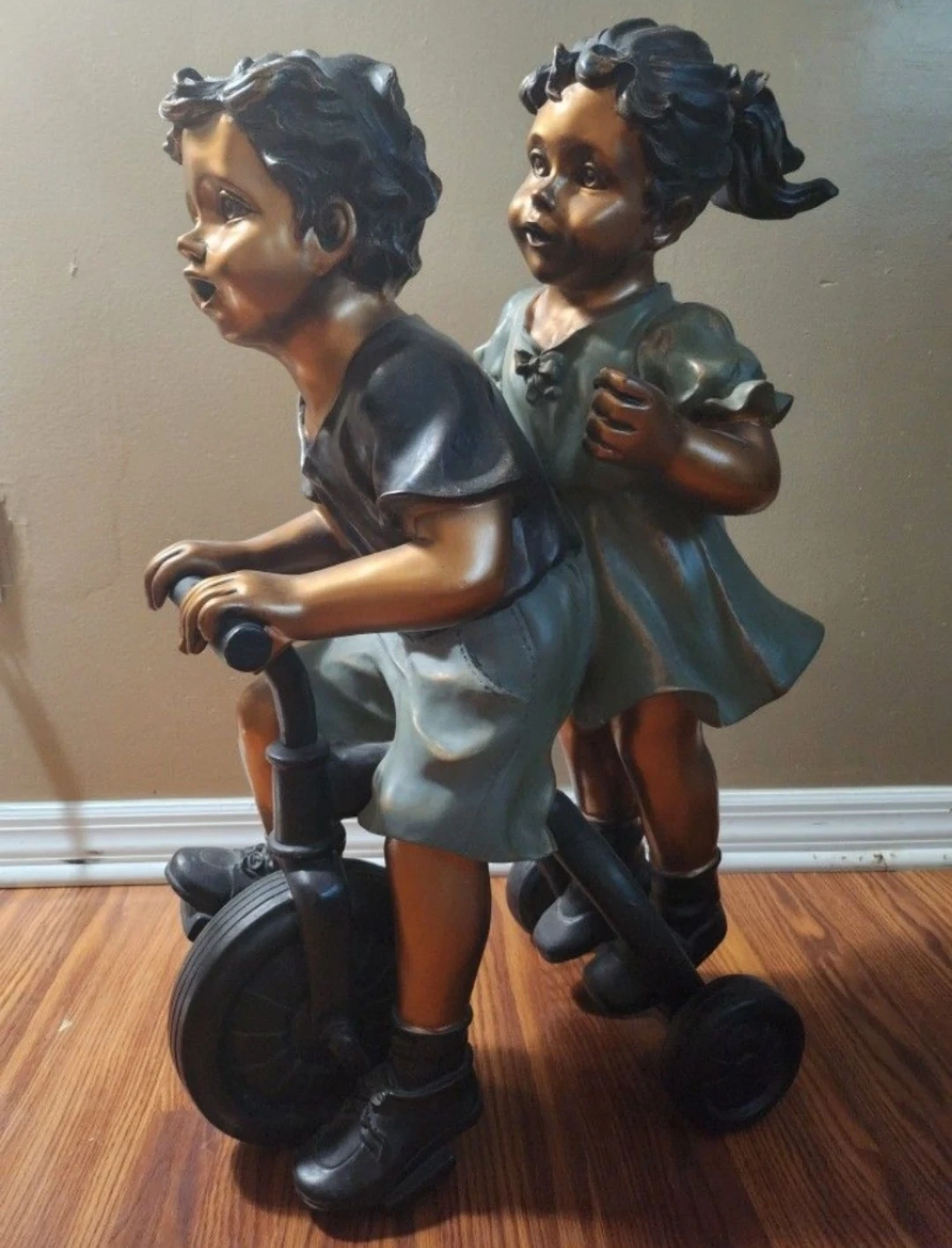 Buy & SellVintage Style Statue of Children on TricycleVintage Style Statue of Children on Tricycle$15This is a vintage-style statue of two children riding a tricycle. It's a lovely piece that would add a touch of whimsy to any homeWHERE TO MEETCheck LocationView MapSELLERverifiedJaeParkchester1779 reviews0 chats·1 favorites·30 viewsSEND CHAT TO SELLERHi Jae! I’m interested in your listing.Hi Jae! I’m interested in your listing.Get the Karrot app to chatSign In to chat