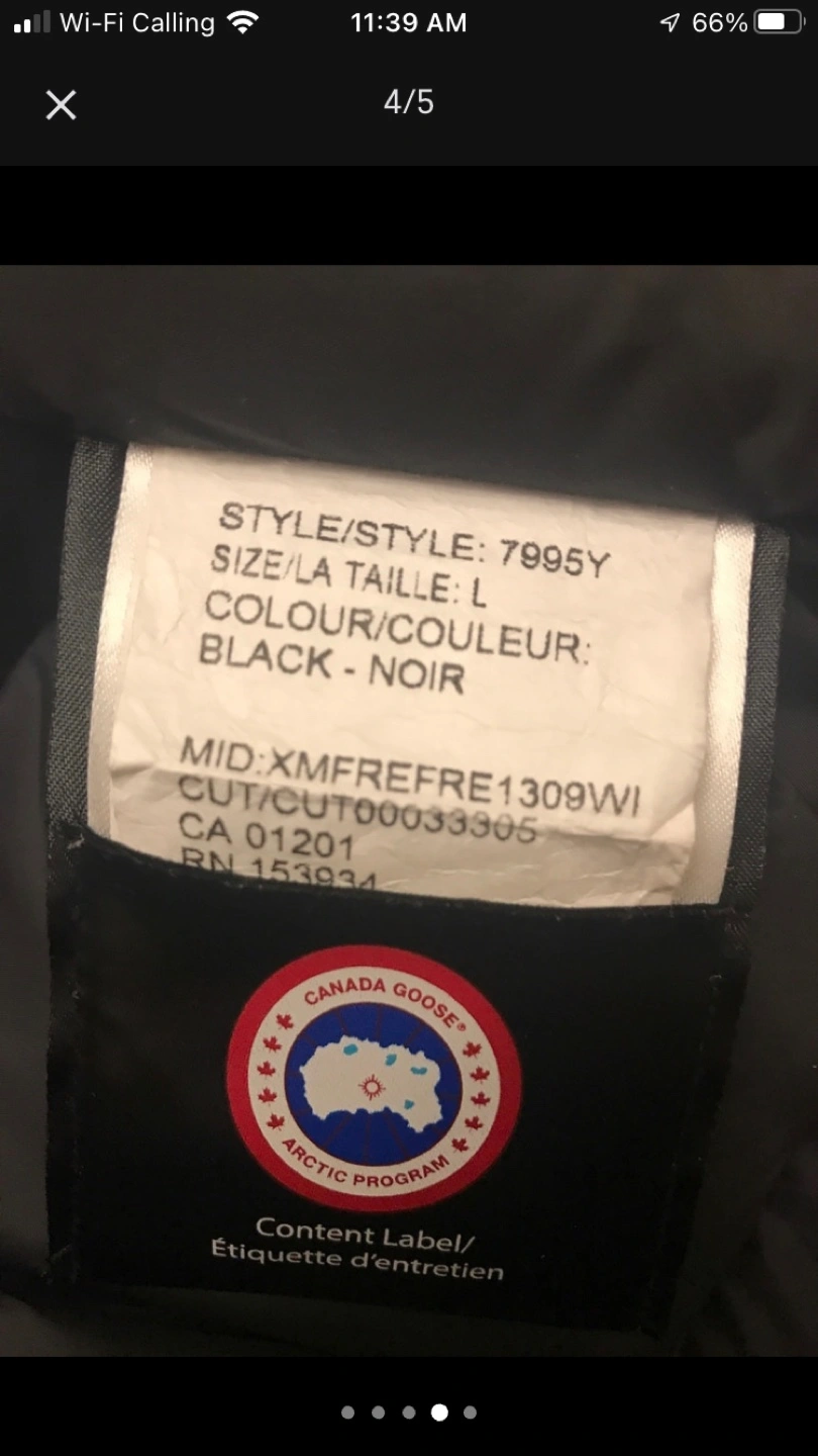 Selling a Canada Goose bomber jacket in size 14-16. It's black and has the Arctic Program patch. There is some slight wear in a few spots on the grey piping on the cuffs, as shown in the pictures. Overall very nice condition.