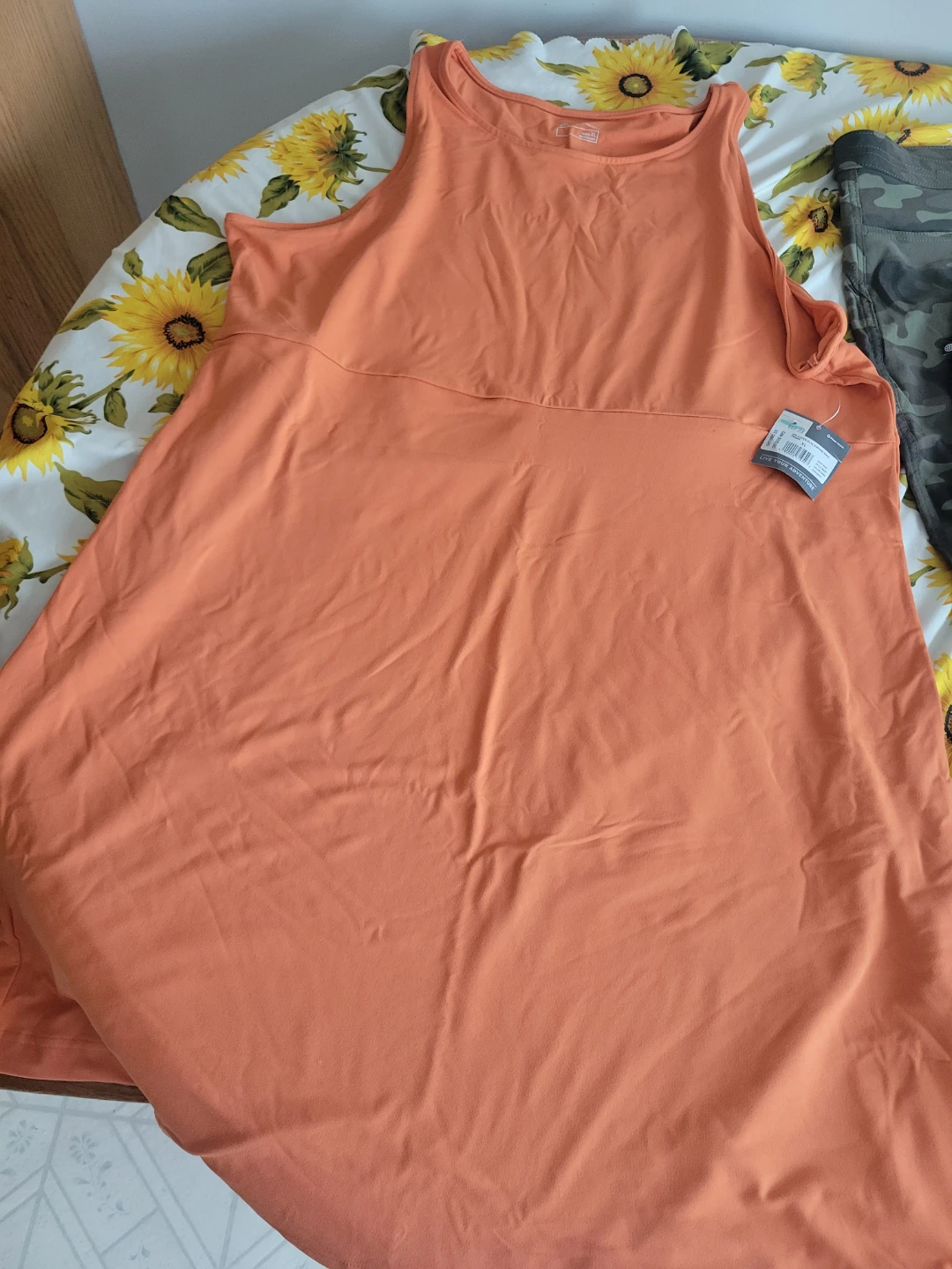 Selling a bundle of clothing items! Included is an Adidas skirt with the classic three stripes and a zipper detail, as well as a white H&M shirt. Also included is a blue shirt and an orange dress. All items are brand new never worn!