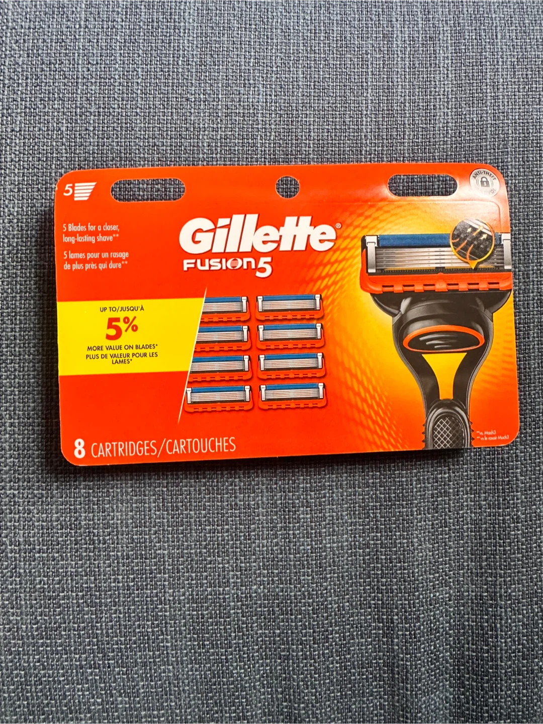 Selling a pack of Gillette Fusion5 razor blade refills. This pack includes 8 cartridges. They fit all Gillette Fusion5 and ProGlide razors. Enjoy a close and comfortable shave!