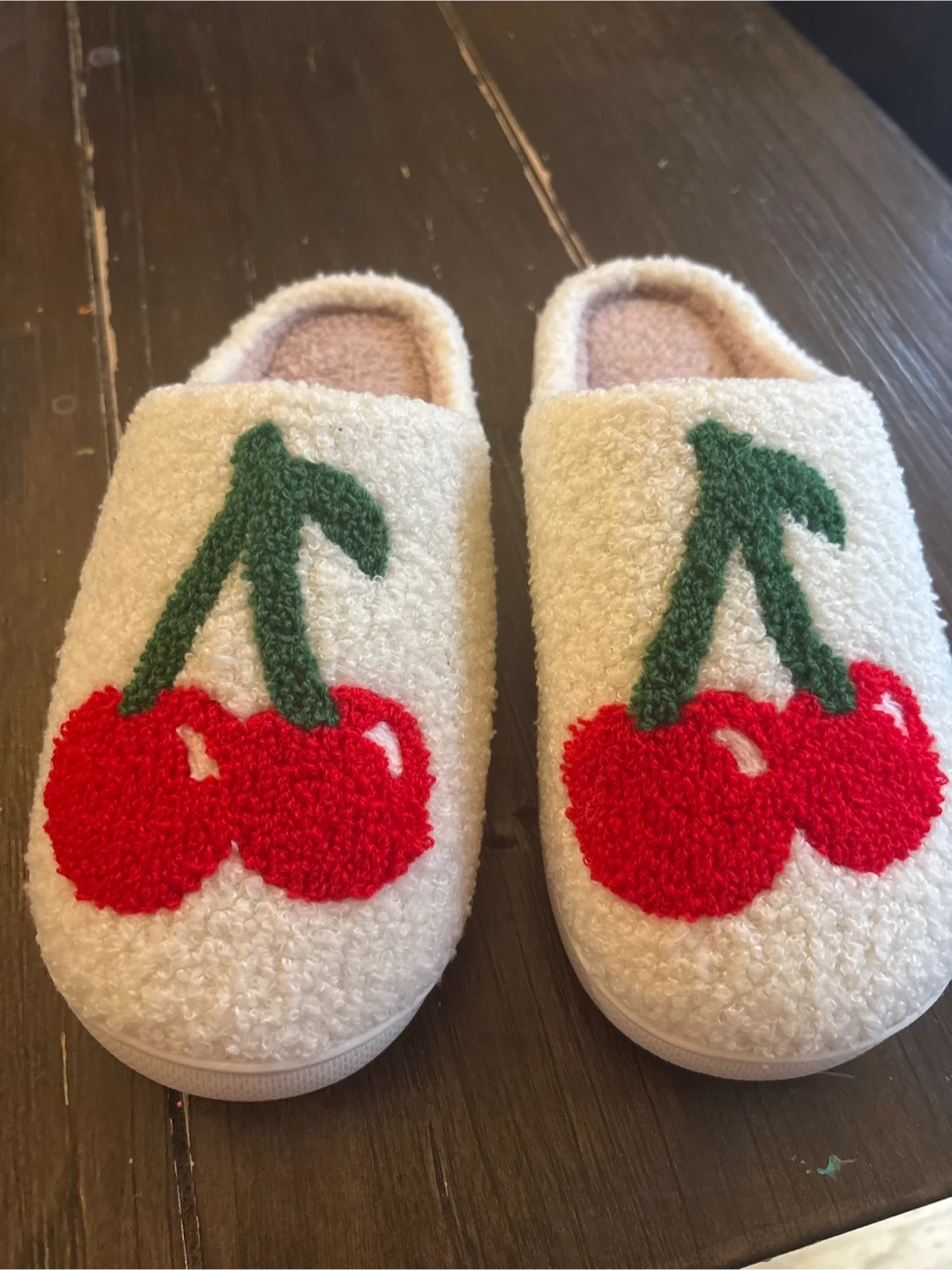 Cute cherry slippers! They are super comfy and perfect for wearing around the house