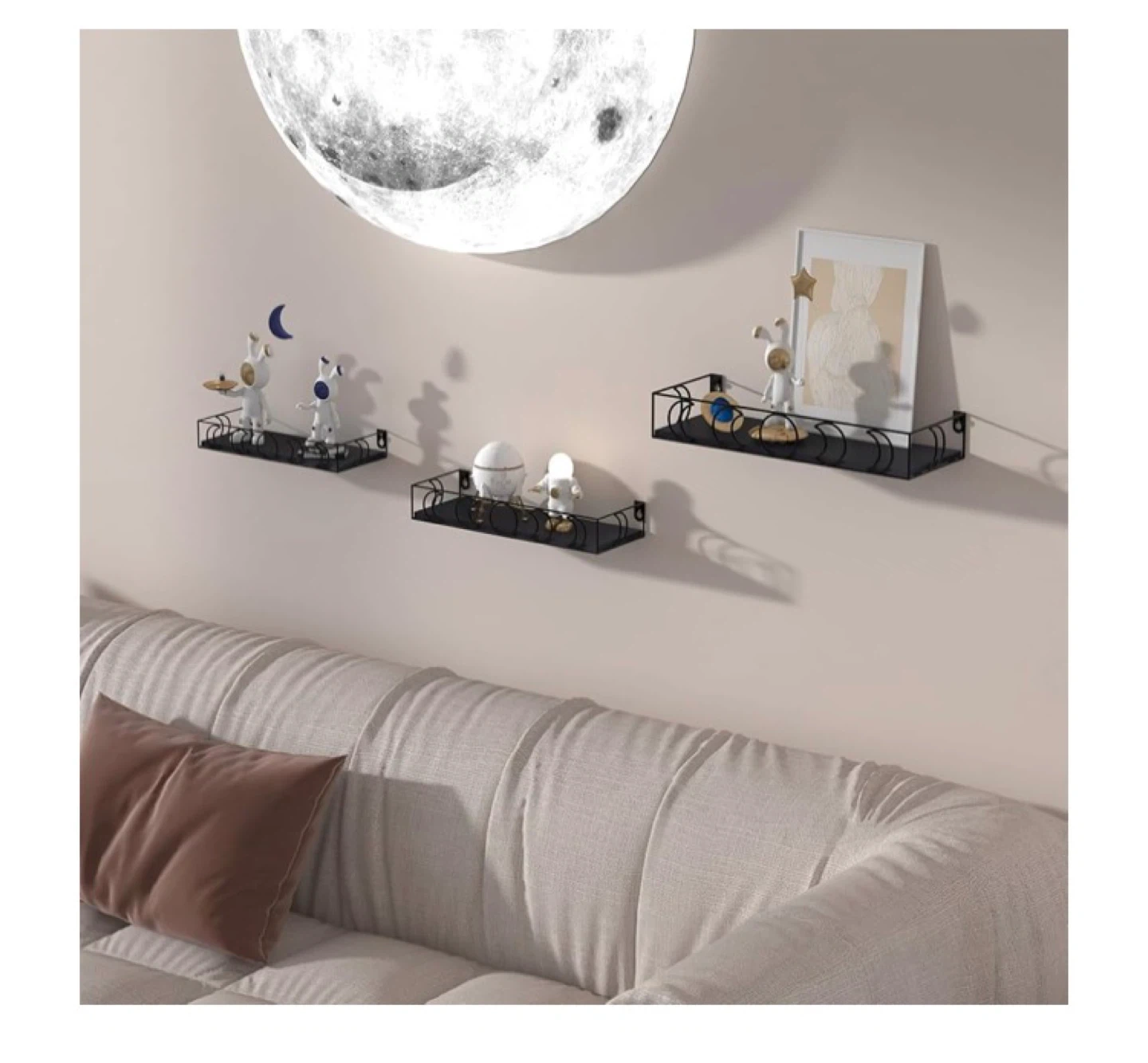 These black metal floating shelves are brand new and still in their original packaging! They come as a set of three different sizes. Perfect for adding a touch of modern style to any room. Installation accessories are included too. Never opened