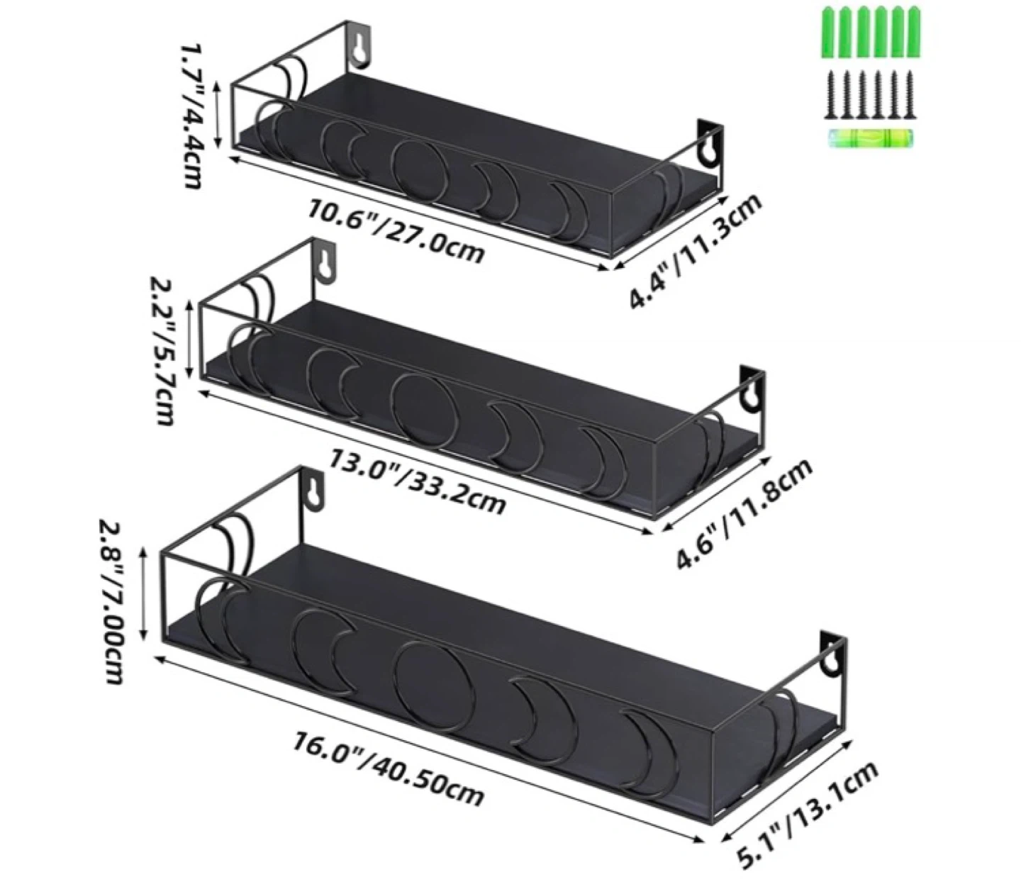 New Black Metal Floating Shelves - Set of 3