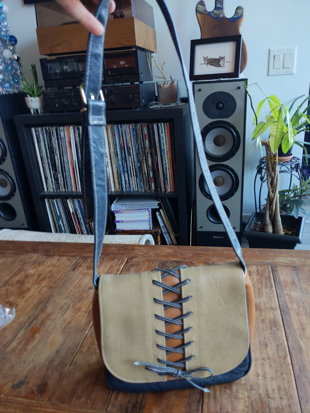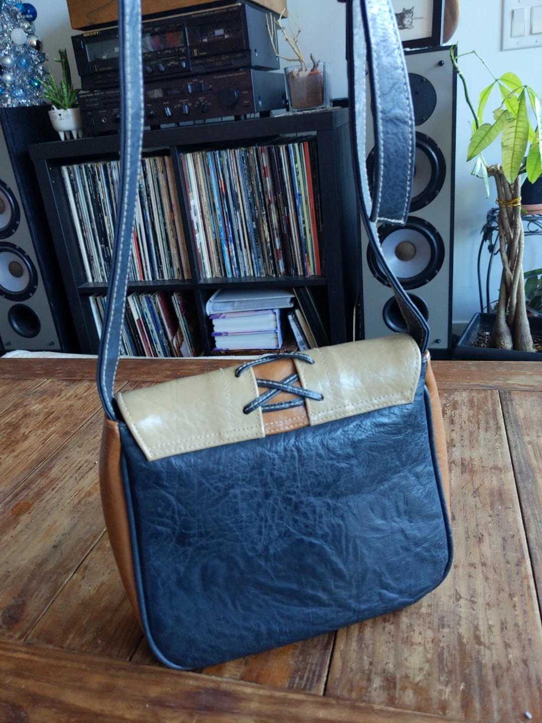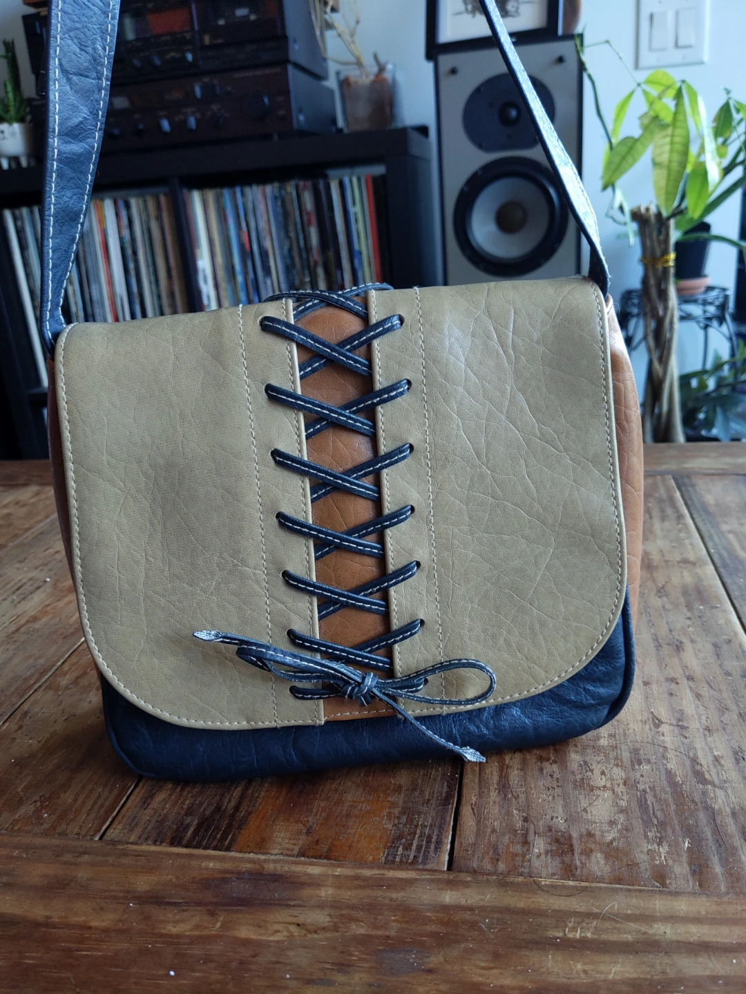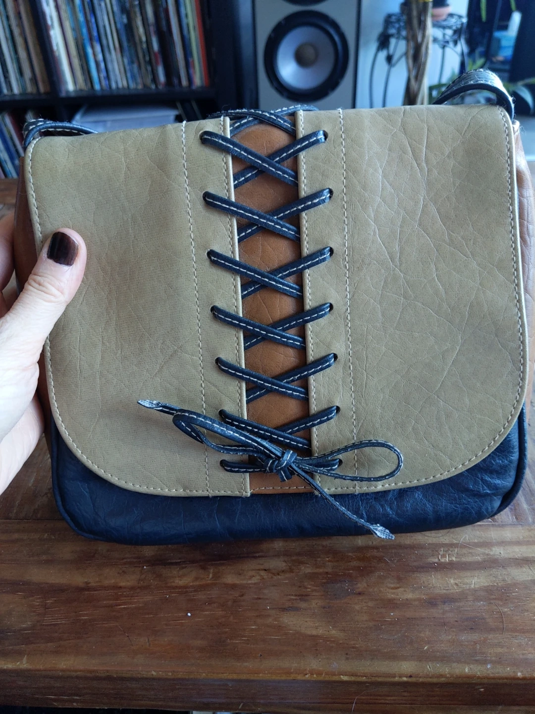 Stylish Pierre Cardin shoulder bag in a unique colour block design! The bag features a lace-up detail on the front. Never used.