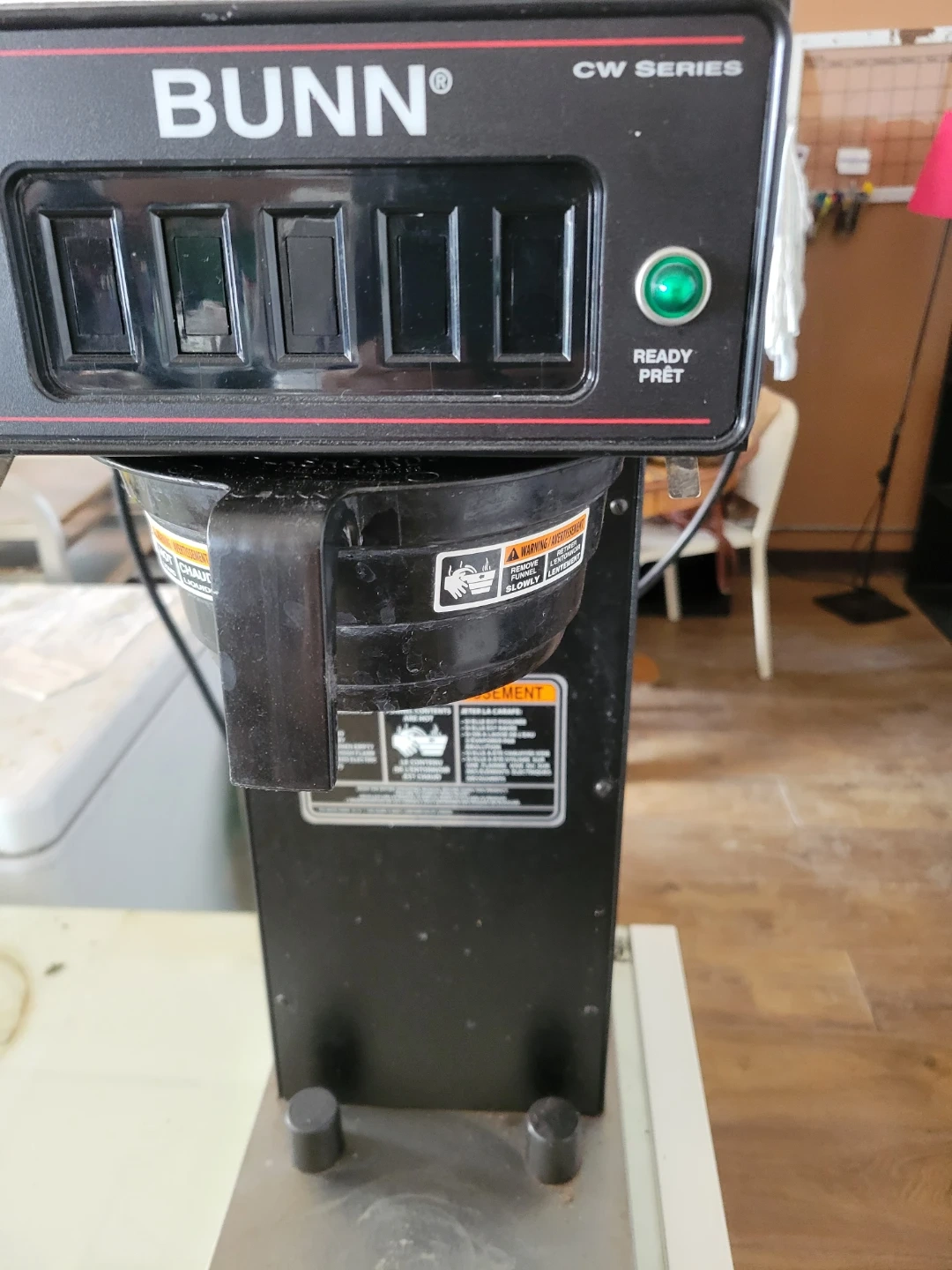 Selling a Bunn CW Series coffee maker. It's in good working condition and ready to brew your favourite coffee! Features include a 'Ready' indicator light and a hot water faucet. Perfect for a small office or home use