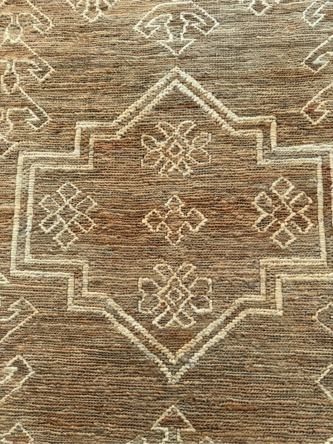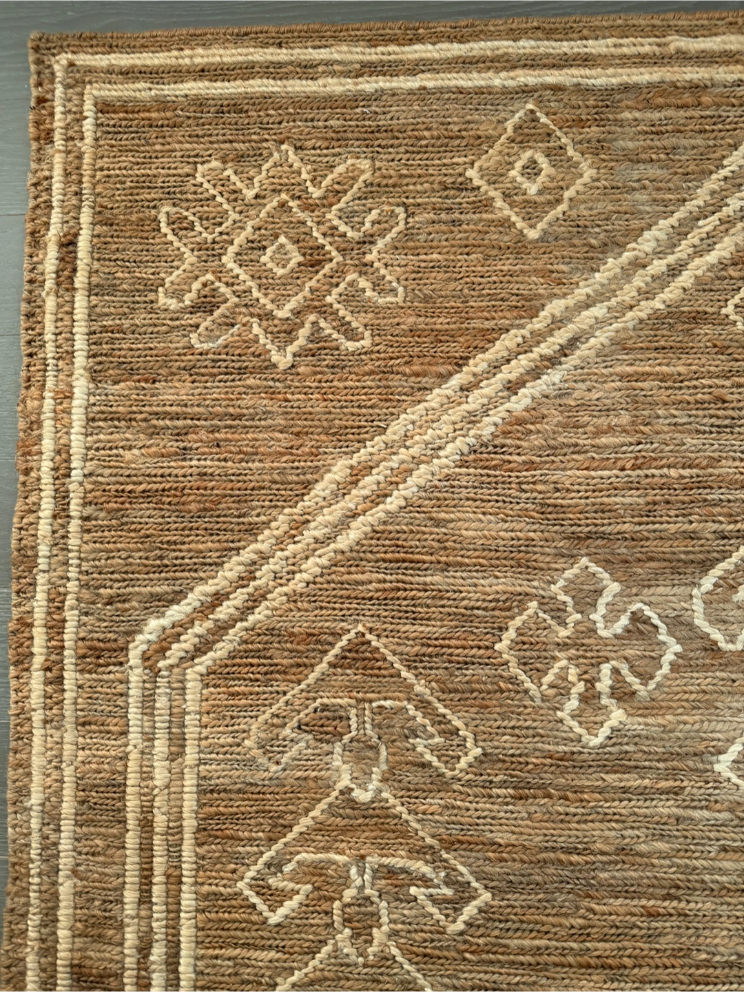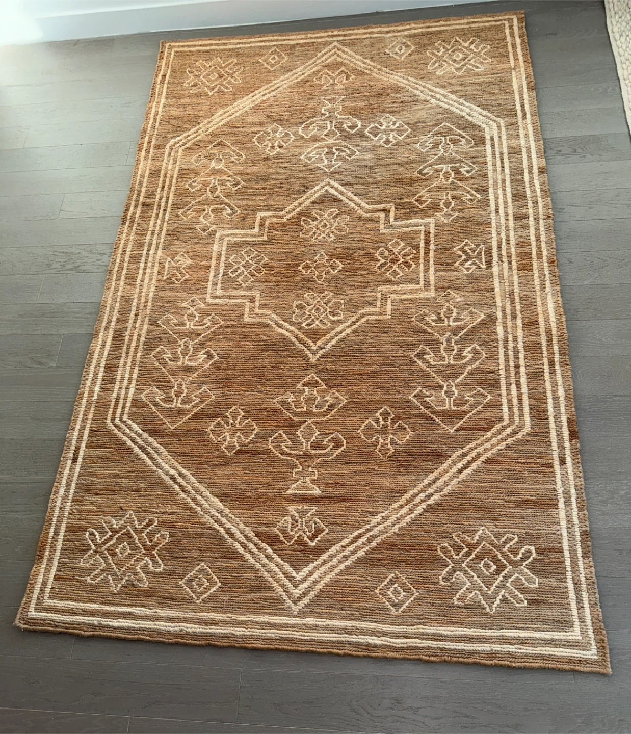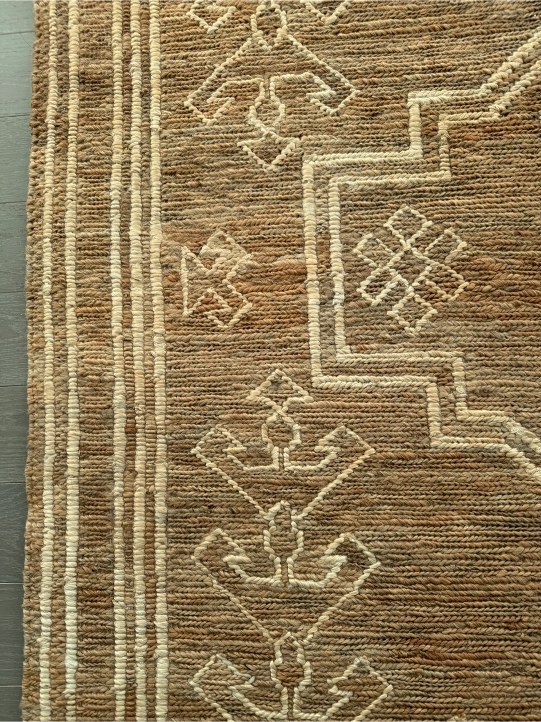 I'm selling a handwoven jute rug (bought new from Ballard Design - less than 2 years) featuring a global geometric design. It's in great condition and would add a nice touch to any room! The rug has a natural, earthy tone that complements various decor styles