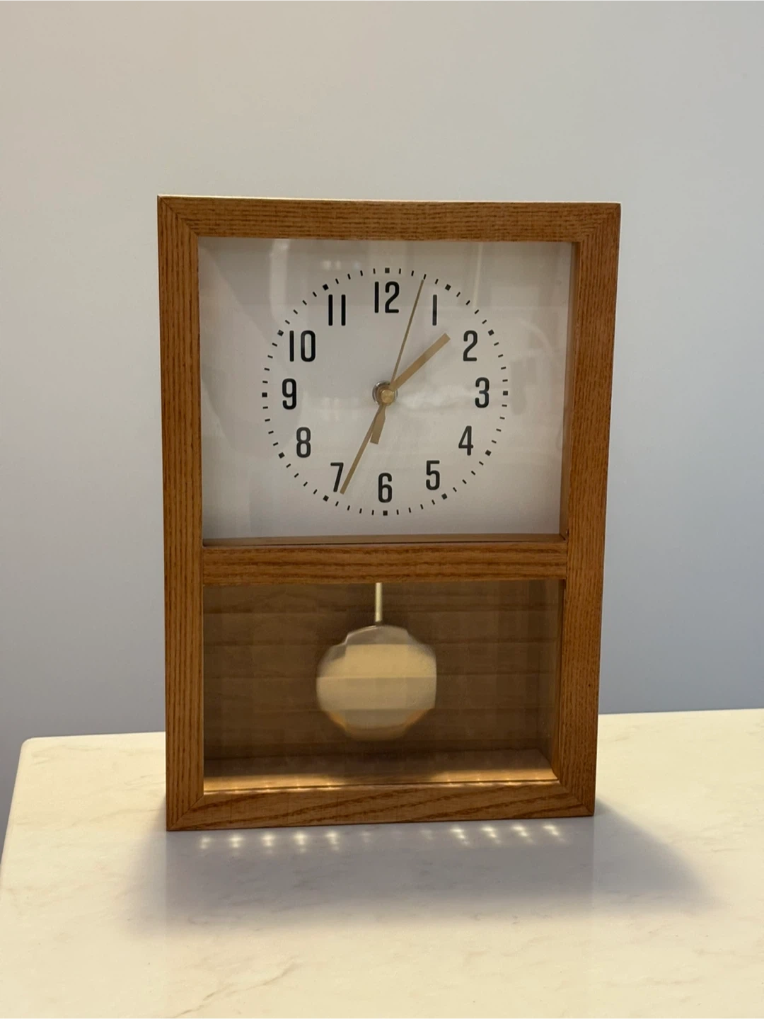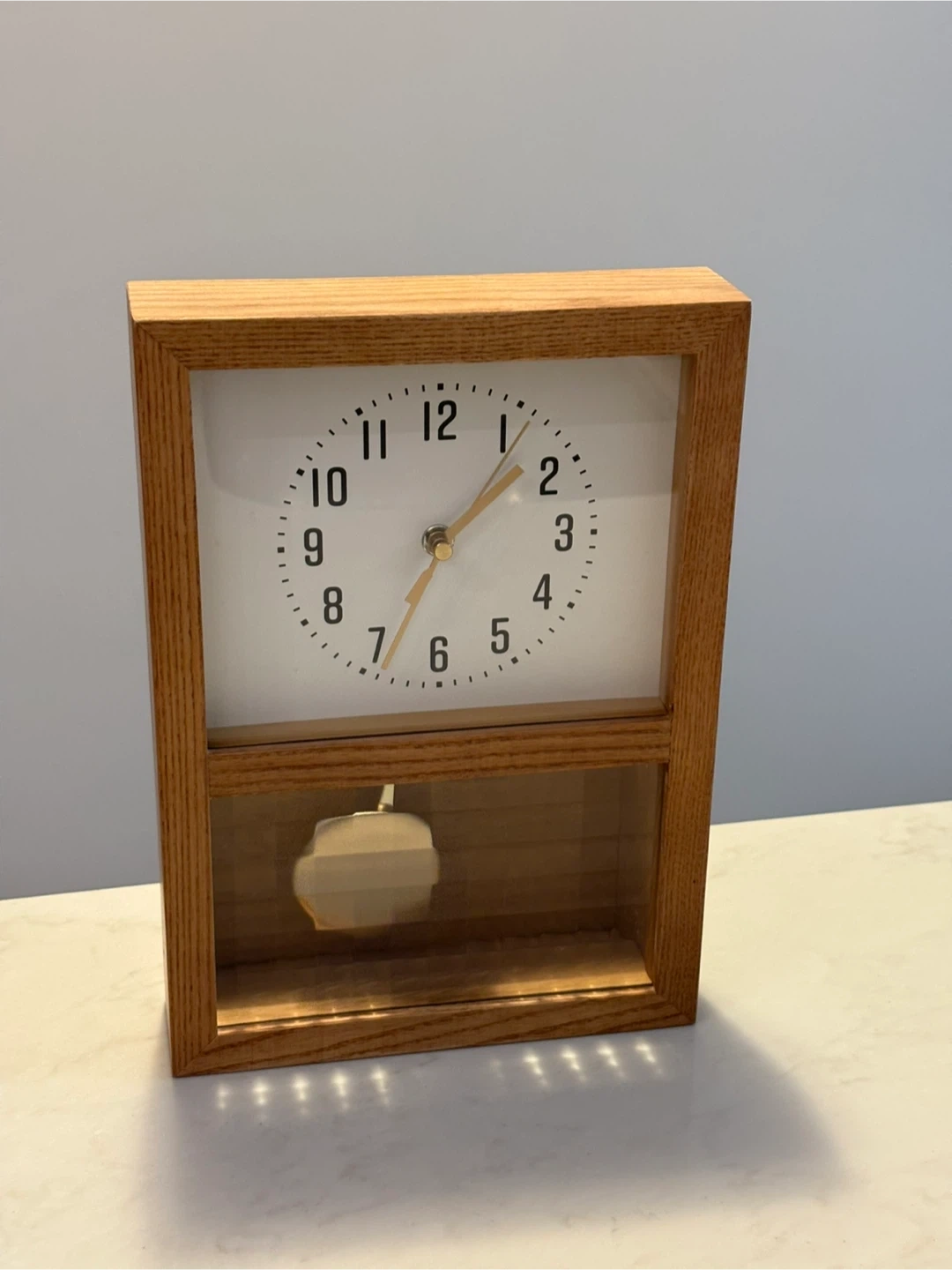 Classic design with a clear face and easy-to-read numbers. The pendulum adds a simple, elegant touch.